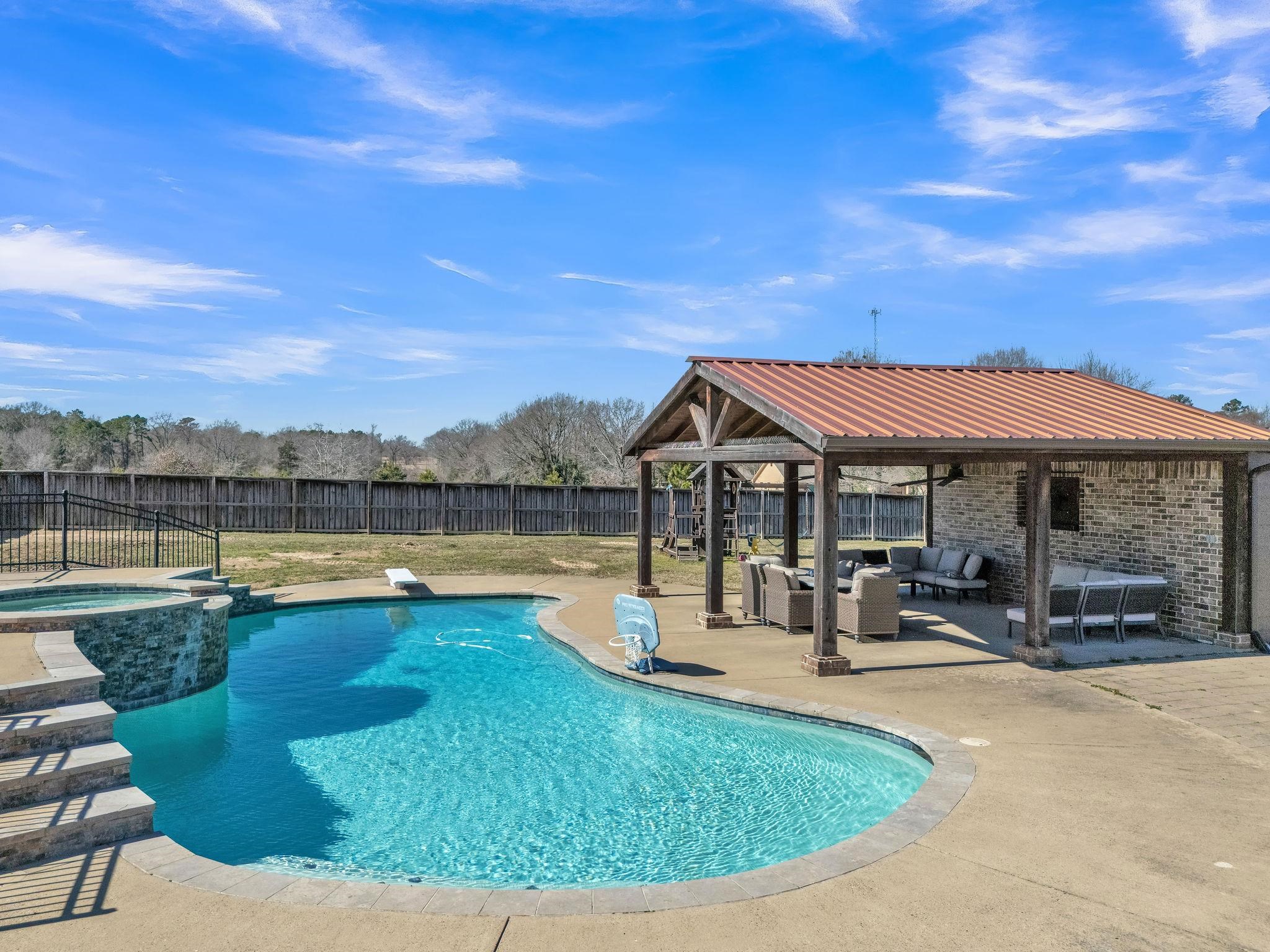 | Location, location, location! PLUS $10,000.00 Buyer Bonus for Closing Costs or Rate Buy Down. Enjoy easy access to I-20 for a smooth commute to Tyler, Dallas, or Shreveport, all within award-winning Lindale ISD. This stunning 4-bedroom, split-floorplan home offers 3 bathrooms and a 2-car garage with exceptional attention to detail throughout. From the moment you step inside, you'll be wowed by beautiful brick archways in the entry and dining areas, along with exposed beams, boxed ceilings, and a cozy gas-log fireplace in the living room. The surround sound system with five speakers will convey. The spacious open-concept kitchen is perfect for entertaining, featuring custom cabinetry, granite countertops, a gas stove, breakfast bar, abundant storage, and two pantries. The breakfast area overlooks the backyard oasis, complete with a sparkling pool and wood-burning fire pit. Outdoor living shines here with a large covered patio featuring a ceiling fan and outdoor fireplace! for year-round enjoyment. A second covered patio with pull-down screens and fans sits on the opposite side of the pool and includes an attached workout room or home office with vinyl flooring and window unit. The fenced pool area offers added safety, while plenty of open yard space remains for play or relaxation. The spacious primary suite includes a luxurious bath with separate shower, jetted tub, double vanities, and a massive walk-in closet. Secondary bedrooms offer generous closet space as well. This home truly delivers comfort, style, and unforgettable outdoor living! for making lasting memories. | |