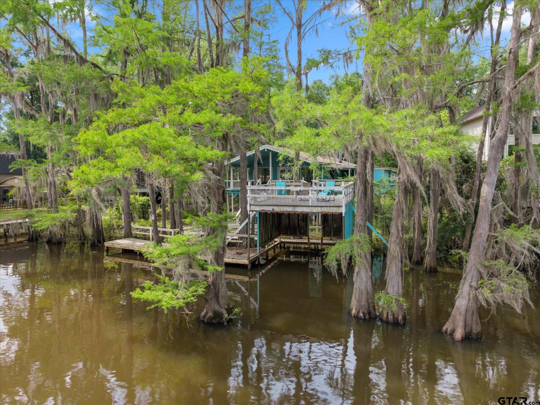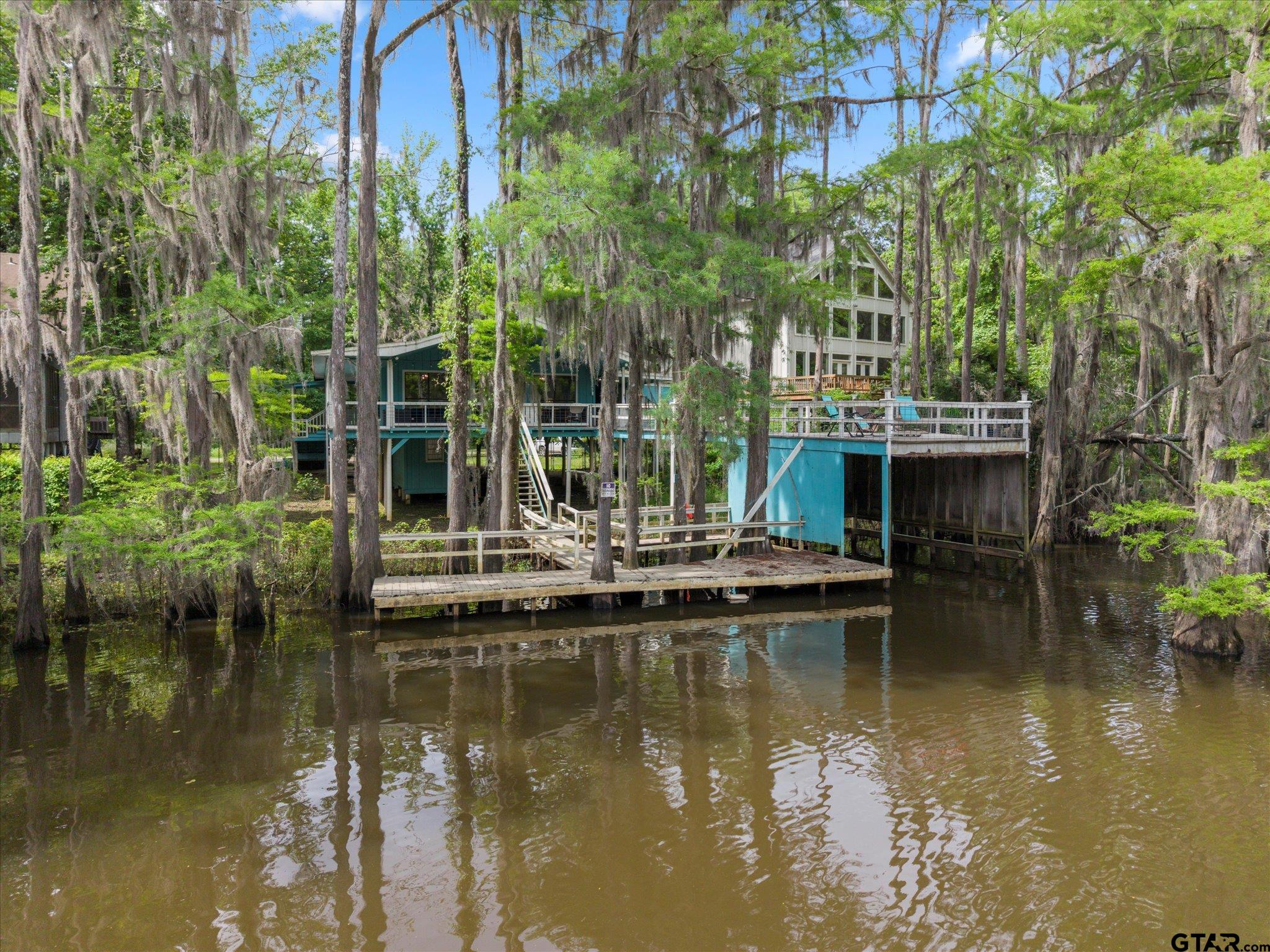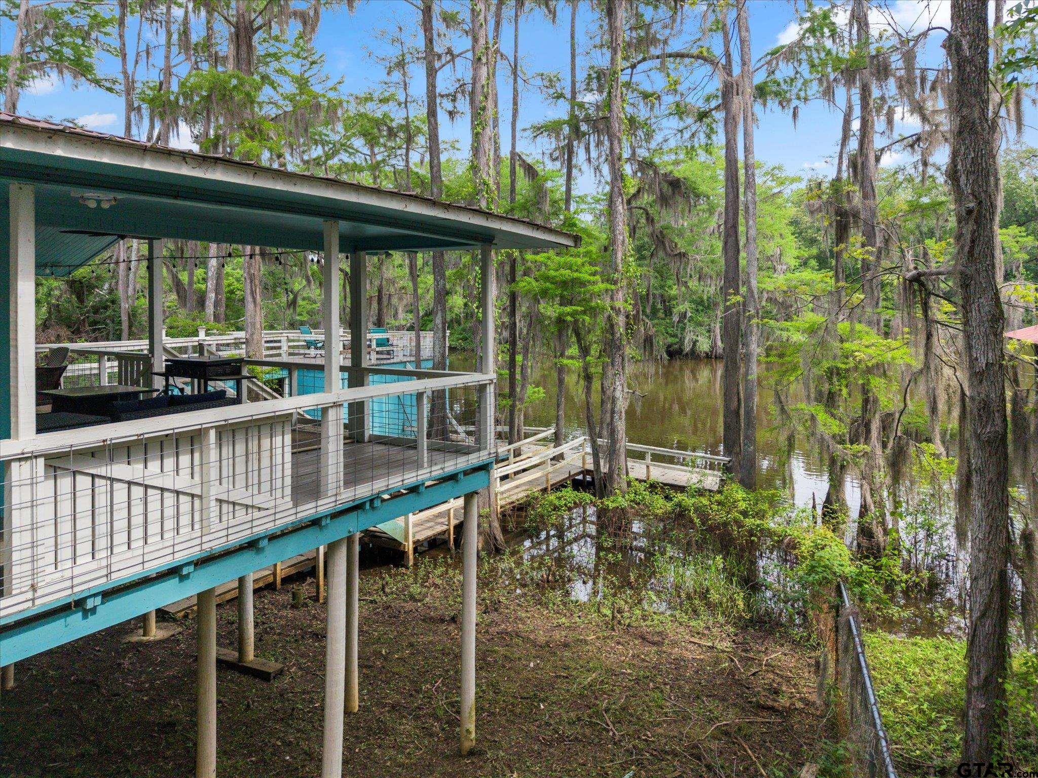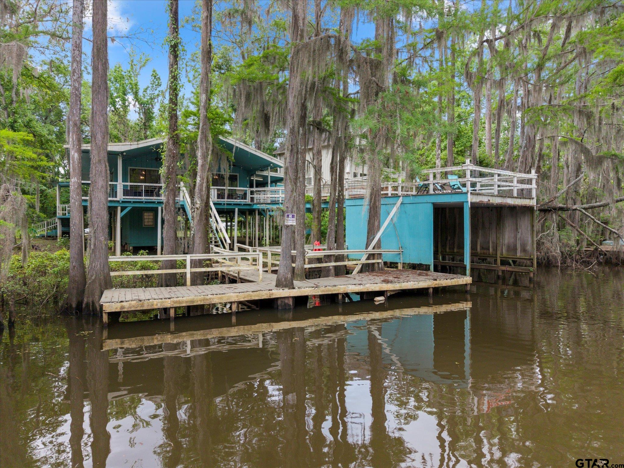 | Welcome to your dream lakehouse on Big Cypress River on Caddo Lake! This one-of-a-kind location is considered the best spot on the river, offering breathtaking views and unparalleled tranquility. Sit back and relax on the catwalk as you watch boats cruise along the river, all while enjoying the peacefulness of your private cove. Inside you will enter to an open concept living, dining room and kitchen with gorgeous views of the river. The large Primary Bedroom is a true retreat, with beautiful Cedar Plank Walls, a spacious bathroom featuring a Jacuzzi Garden Tub for ultimate relaxation, and a Huge Walk-in Closet. The Second Bedroom is fresh and inviting, while the Third Bedroom is newly remodeled offering a great space as a guest room, office or kid's game room. Step outside and prepare to be amazed! The wrap-around porch and deck areas provide breathtaking views of the river, creating a serene setting perfect for both relaxation and entertaining. For fishing enthusiasts, this is truly a paradise. Imagine casting your line and reeling in the catch of the day, just steps away from your own backyard or swimming off the dock. The boathouse below deck is conveniently attached to the dock by plank walkways, offering easy access for all your water activities. But the features don't end there! This home also includes a spacious workshop located under the house, providing ample space for boat storage, golf cart parking, and more. Other notable features include a fenced yard, RV hook-up, and covered parking. By water, it is centrally positioned on Big Cypress Bayou, nestled in at Mossy Break and Clintons Chute near Cypress Village. Sesame Street boasts peacefulness and tranquility, with no through traffic. You are a quick five minute drive by boat to Big Pines Lodge, 20 minutes to Jefferson or 40 minutes to the casinos in Shreveport - incredible! This home has never flooded, providing peace of mind for you and your family. FULLY FURNISHED riverfront retreat! | |