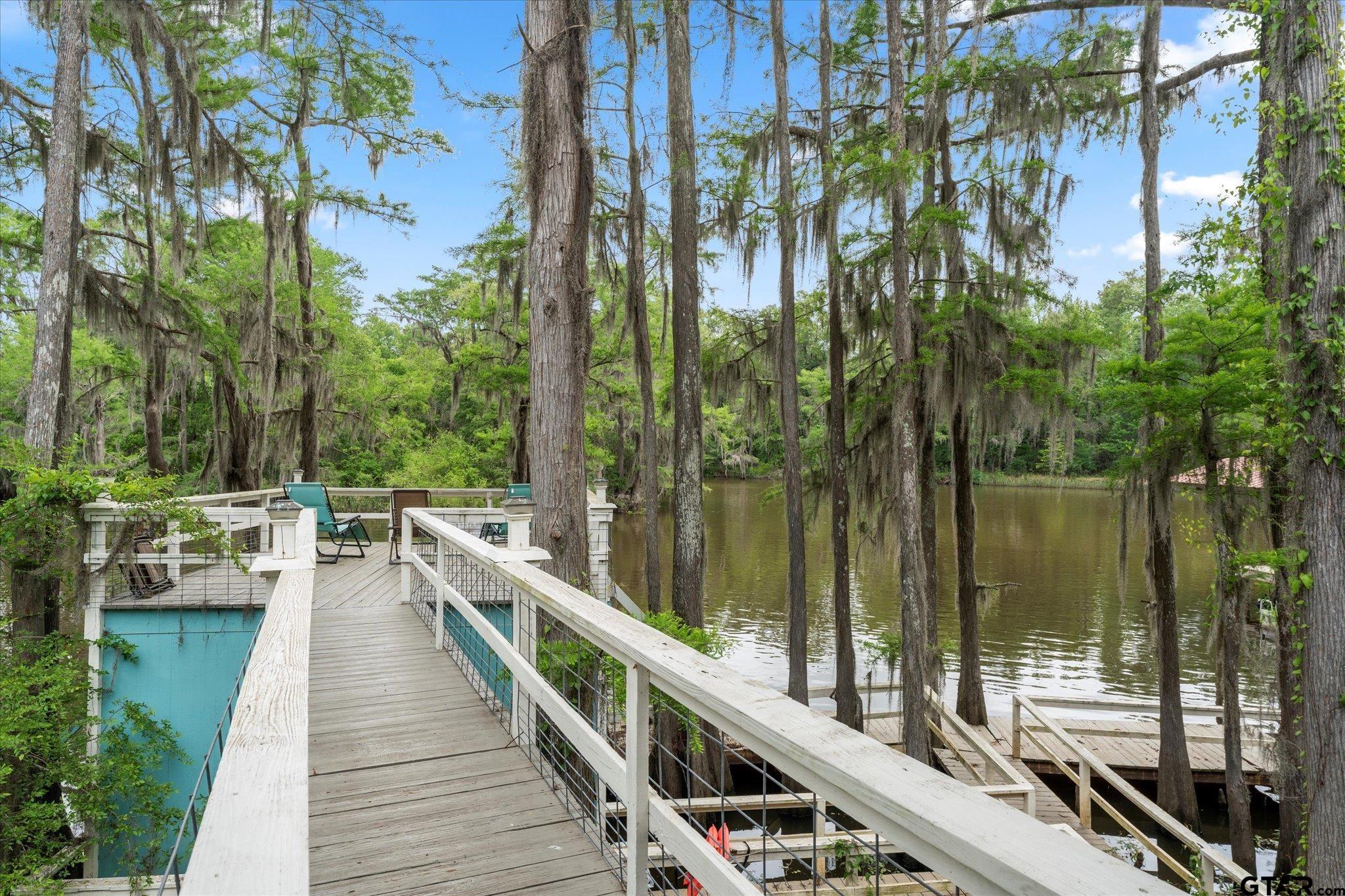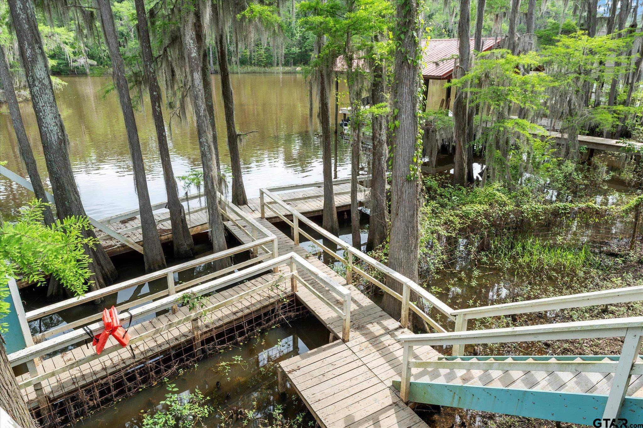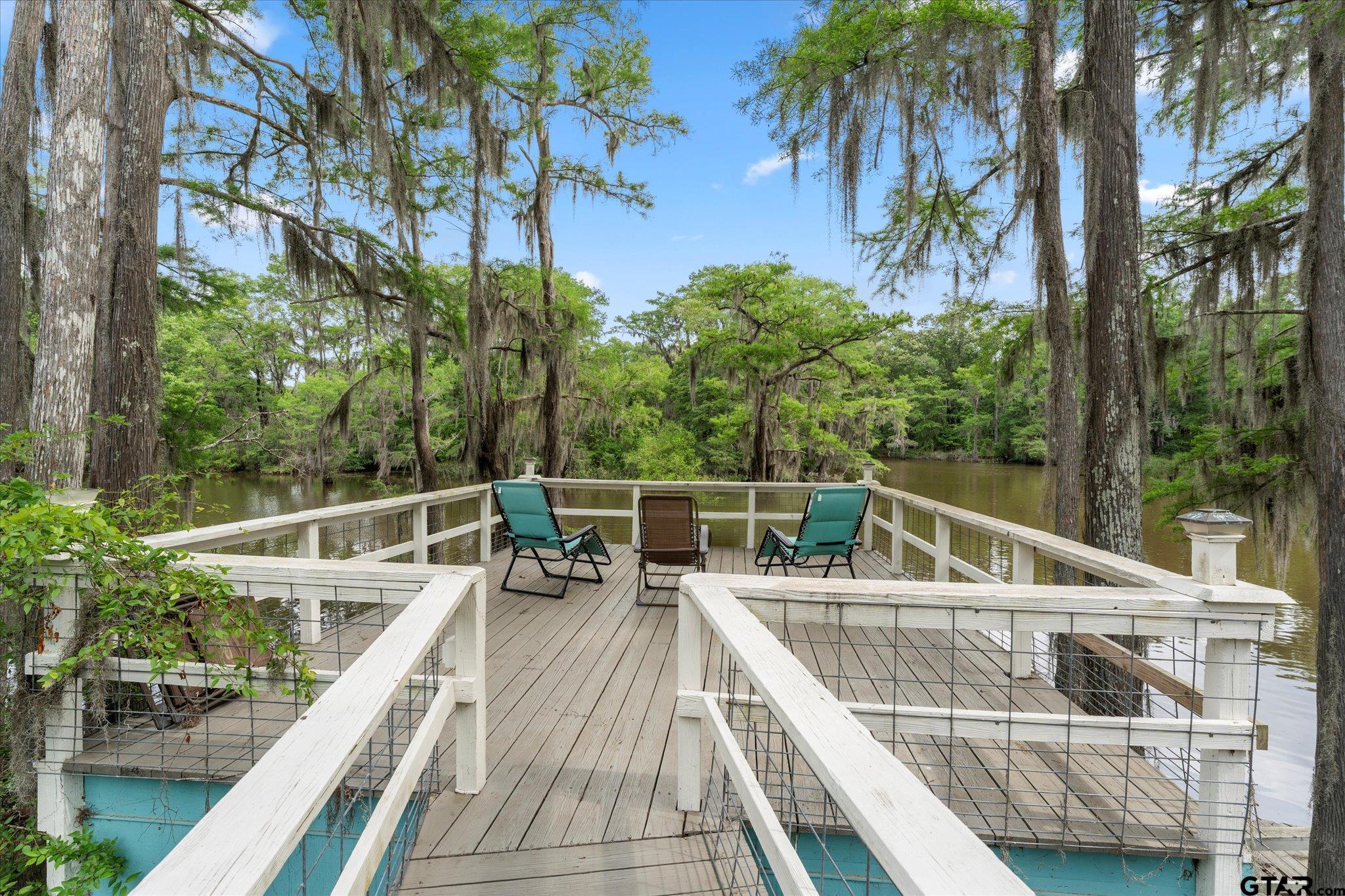 | Welcome to your dream lakehouse on Big Cypress River on Caddo Lake! This one-of-a-kind location is considered the best spot on the river, offering breathtaking views and unparalleled tranquility. Sit back and relax on the catwalk as you watch boats cruise along the river, all while enjoying the peacefulness of your private cove. Inside you will enter to an open concept living, dining room and kitchen with gorgeous views of the river. The large Primary Bedroom is a true retreat, with beautiful Cedar Plank Walls, a spacious bathroom featuring a Jacuzzi Garden Tub for ultimate relaxation, and a Huge Walk-in Closet. The Second Bedroom is fresh and inviting, while the Third Bedroom is newly remodeled offering a great space as a guest room, office or kid's game room. Step outside and prepare to be amazed! The wrap-around porch and deck areas provide breathtaking views of the river, creating a serene setting perfect for both relaxation and entertaining. For fishing enthusiasts, this is truly a paradise. Imagine casting your line and reeling in the catch of the day, just steps away from your own backyard or swimming off the dock. The boathouse below deck is conveniently attached to the dock by plank walkways, offering easy access for all your water activities. But the features don't end there! This home also includes a spacious workshop located under the house, providing ample space for boat storage, golf cart parking, and more. Other notable features include a fenced yard, RV hook-up, and covered parking. By water, it is centrally positioned on Big Cypress Bayou, nestled in at Mossy Break and Clintons Chute near Cypress Village. Sesame Street boasts peacefulness and tranquility, with no through traffic. You are a quick five minute drive by boat to Big Pines Lodge, 20 minutes to Jefferson or 40 minutes to the casinos in Shreveport - incredible! This home has never flooded, providing peace of mind for you and your family. FULLY FURNISHED riverfront retreat! | |