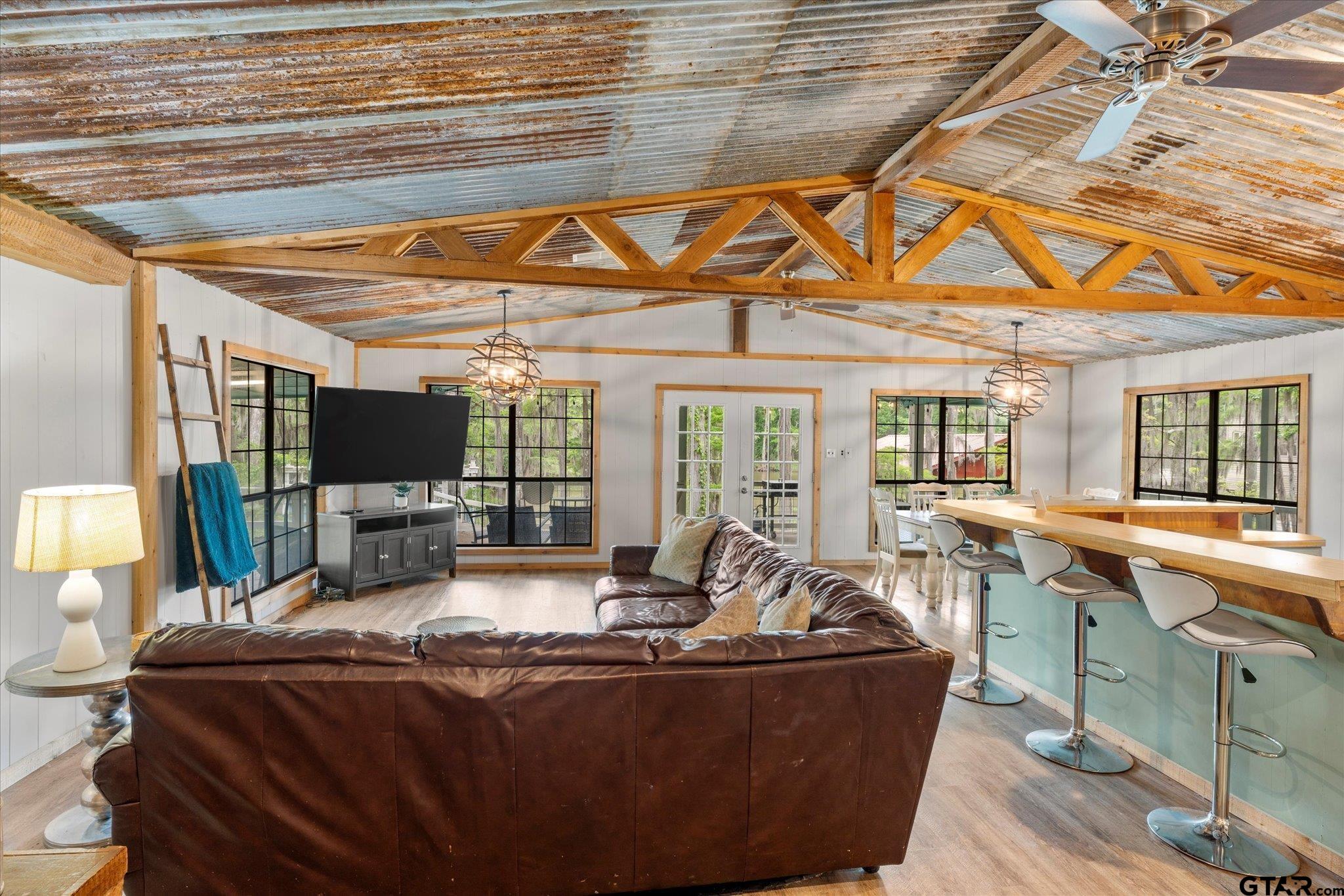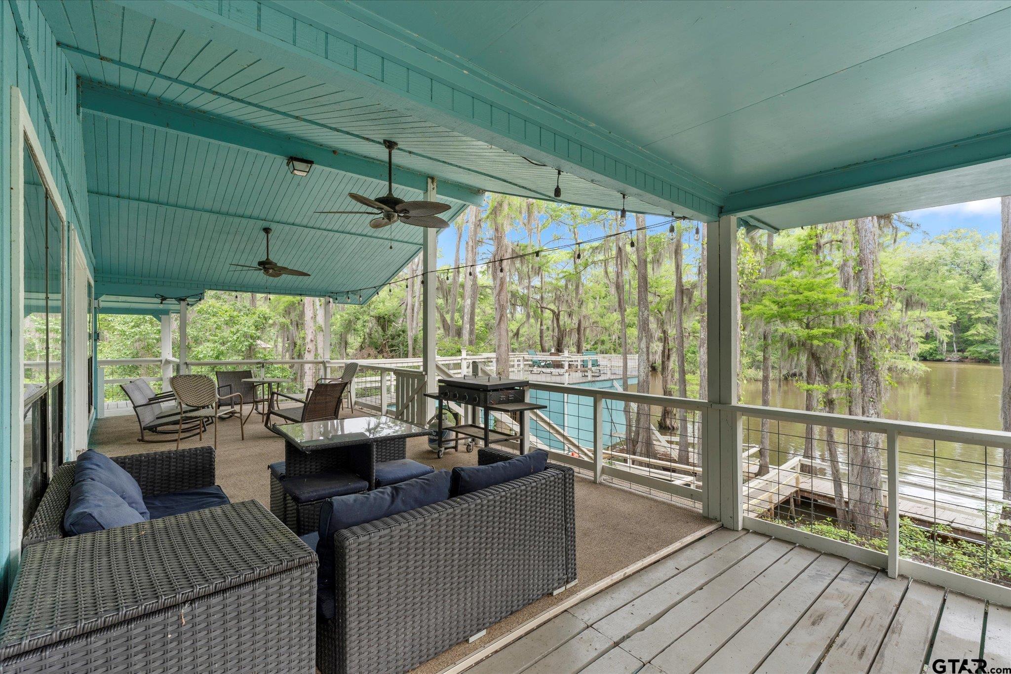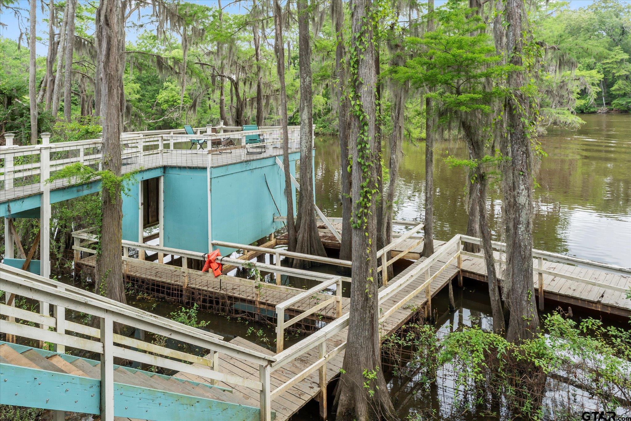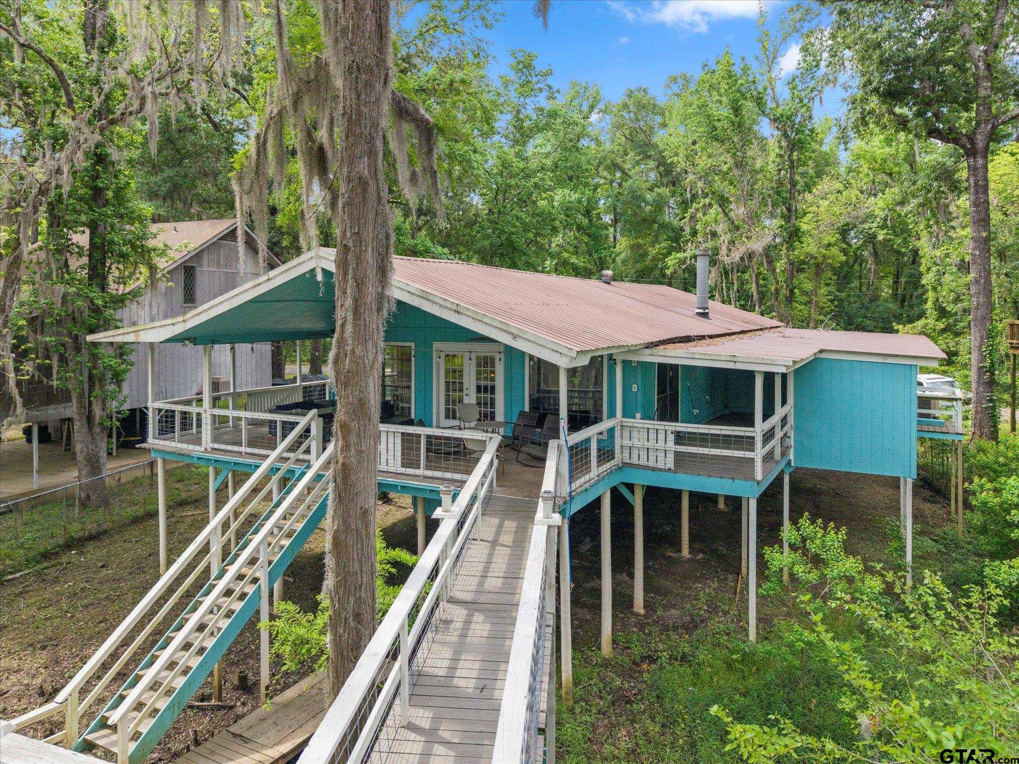 | Welcome to your dream lakehouse on Big Cypress River on Caddo Lake! This one-of-a-kind location is considered the best spot on the river, offering breathtaking views and unparalleled tranquility. Sit back and relax on the catwalk as you watch boats cruise along the river, all while enjoying the peacefulness of your private cove. Inside you will enter to an open concept living, dining room and kitchen with gorgeous views of the river. The large Primary Bedroom is a true retreat, with beautiful Cedar Plank Walls, a spacious bathroom featuring a Jacuzzi Garden Tub for ultimate relaxation, and a Huge Walk-in Closet. The Second Bedroom is fresh and inviting, while the Third Bedroom is newly remodeled offering a great space as a guest room, office or kid's game room. Step outside and prepare to be amazed! The wrap-around porch and deck areas provide breathtaking views of the river, creating a serene setting perfect for both relaxation and entertaining. For fishing enthusiasts, this is truly a paradise. Imagine casting your line and reeling in the catch of the day, just steps away from your own backyard or swimming off the dock. The boathouse below deck is conveniently attached to the dock by plank walkways, offering easy access for all your water activities. But the features don't end there! This home also includes a spacious workshop located under the house, providing ample space for boat storage, golf cart parking, and more. Other notable features include a fenced yard, RV hook-up, and covered parking. By water, it is centrally positioned on Big Cypress Bayou, nestled in at Mossy Break and Clintons Chute near Cypress Village. Sesame Street boasts peacefulness and tranquility, with no through traffic. You are a quick five minute drive by boat to Big Pines Lodge, 20 minutes to Jefferson or 40 minutes to the casinos in Shreveport - incredible! This home has never flooded, providing peace of mind for you and your family. FULLY FURNISHED riverfront retreat! | |