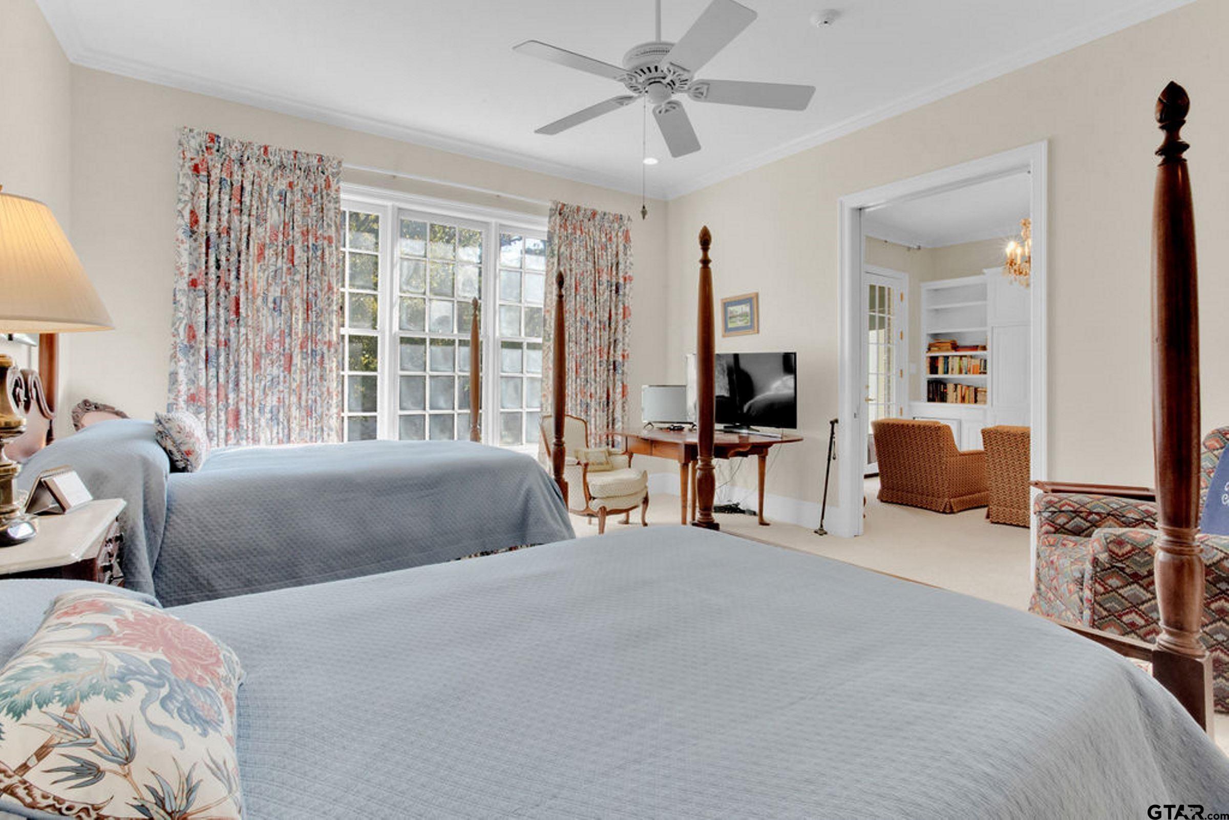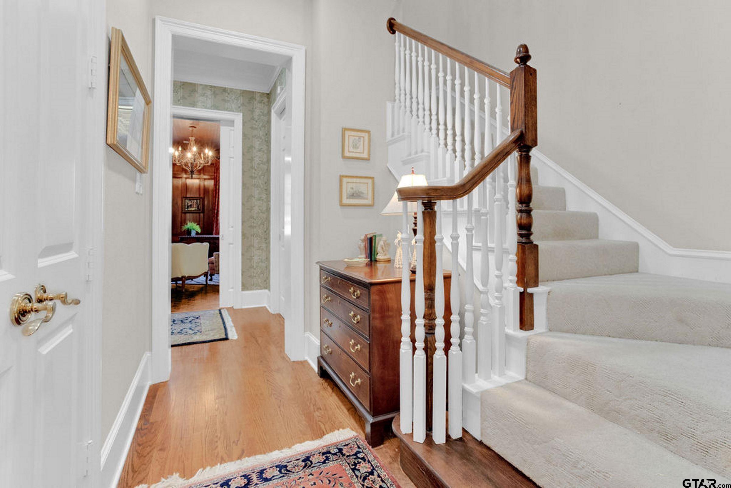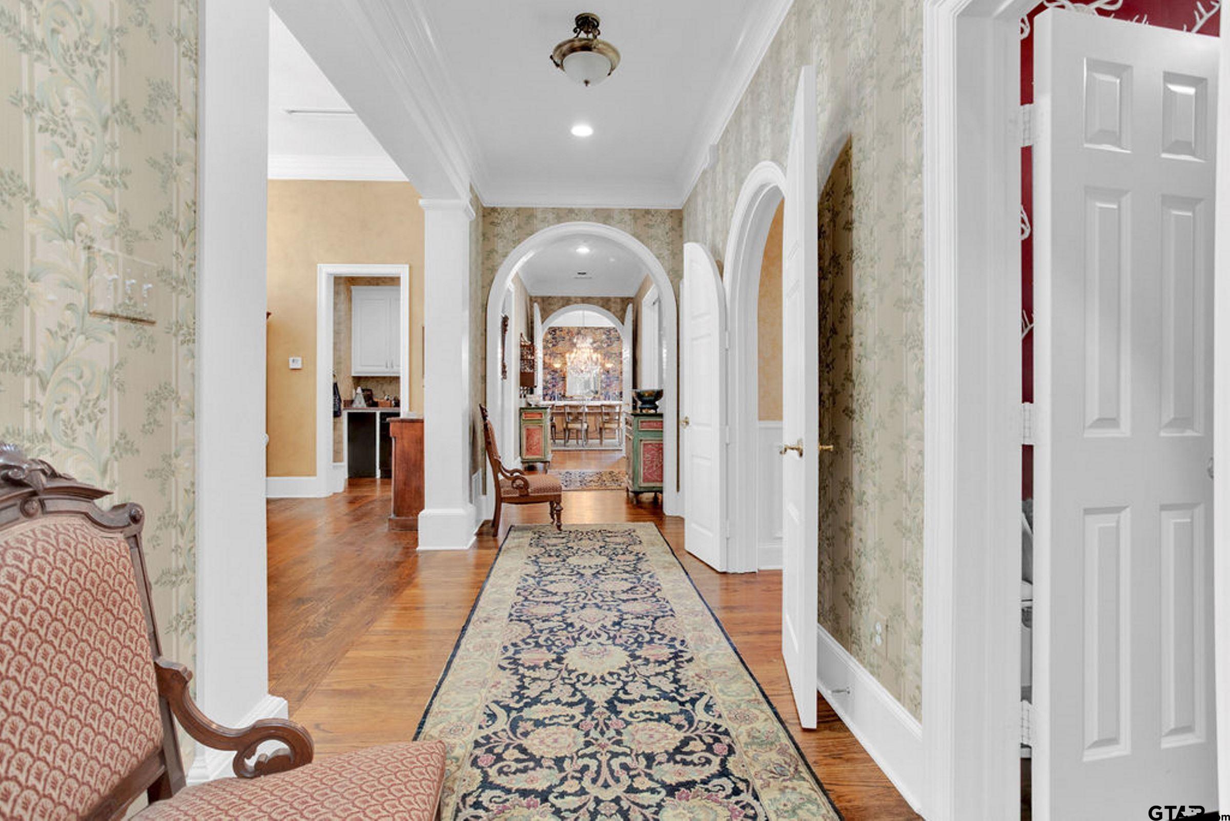 | Welcome to this exceptional Classical Georgian masterpiece on 2.32 acres in the heart of historic Palestine, Texas. Built in 2000, this remarkable two-story home beautifully captures the timeless elegance of true Georgian architecture while offering the benefits of modern construction & energy efficiency. From the moment you enter the grand foyer, you're greeted by a stunning curved staircase with wainscoting & arched hall leading to double doors that open to a wide central hallway! breathtaking feature running through the heart of the home.To one side of the entry, the walnut-paneled library exudes warmth & sophistication, complete with custom shelving, parquet wood floors, & a wood-burning fireplace. Opposite lies a gracious living room featuring another fireplace, double pocket doors, natural light & exquisite millwork. The grand center hall with scraped wood floors & arched solid wood doors seamlessly connects the main living spaces, including the elegant dining room adorned with a crystal chandelier, upholstered walls, wainscoting, and intricate dentil molding. A well-appointed butler's pantry with sink, dishwasher, warming drawer, & china closet leads to the chef's kitchen boasting abundant cabinetry, island, Sub-Zero refrigerator/freezer, Thermador double ovens, Monogram cooktop with downdraft, & Bosch dishwasher. The adjoining breakfast room flows into the inviting family room, where a wall of windows with arched transoms frame serene views of the tree-shaded backyard. A brick fireplace with antique carved mantel anchors the space, while french doors open to an elevated patio perfect for entertaining.The luxurious main-level primary suite includes a private sitting area, dual bathrooms, & two large closets. Upstairs, accessible by elevator or stair, are three to four spacious bedrooms & two baths. The lower level features an indoor lap pool, exercise room, bath, storage, & a third garage! the ultimate blend of grandeur, comfort, & practicality. | |