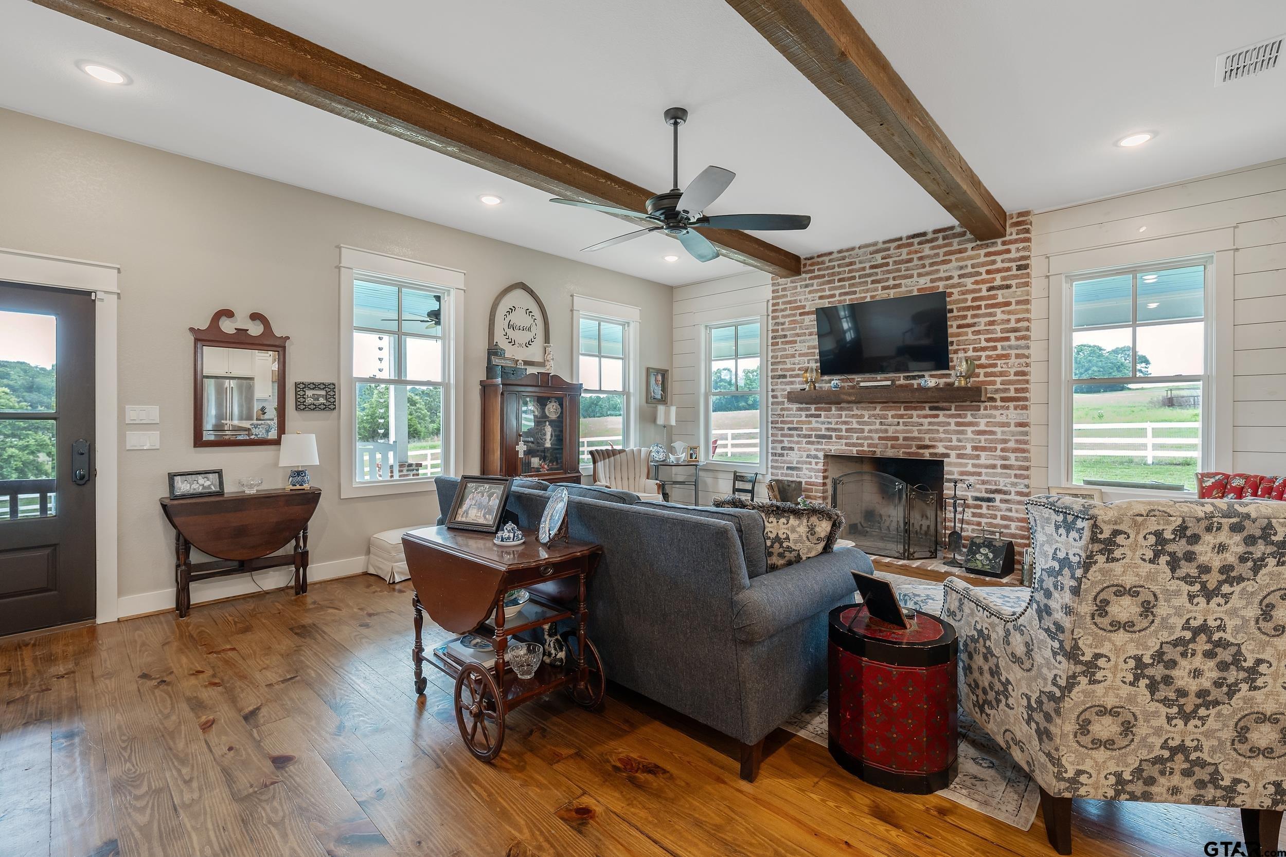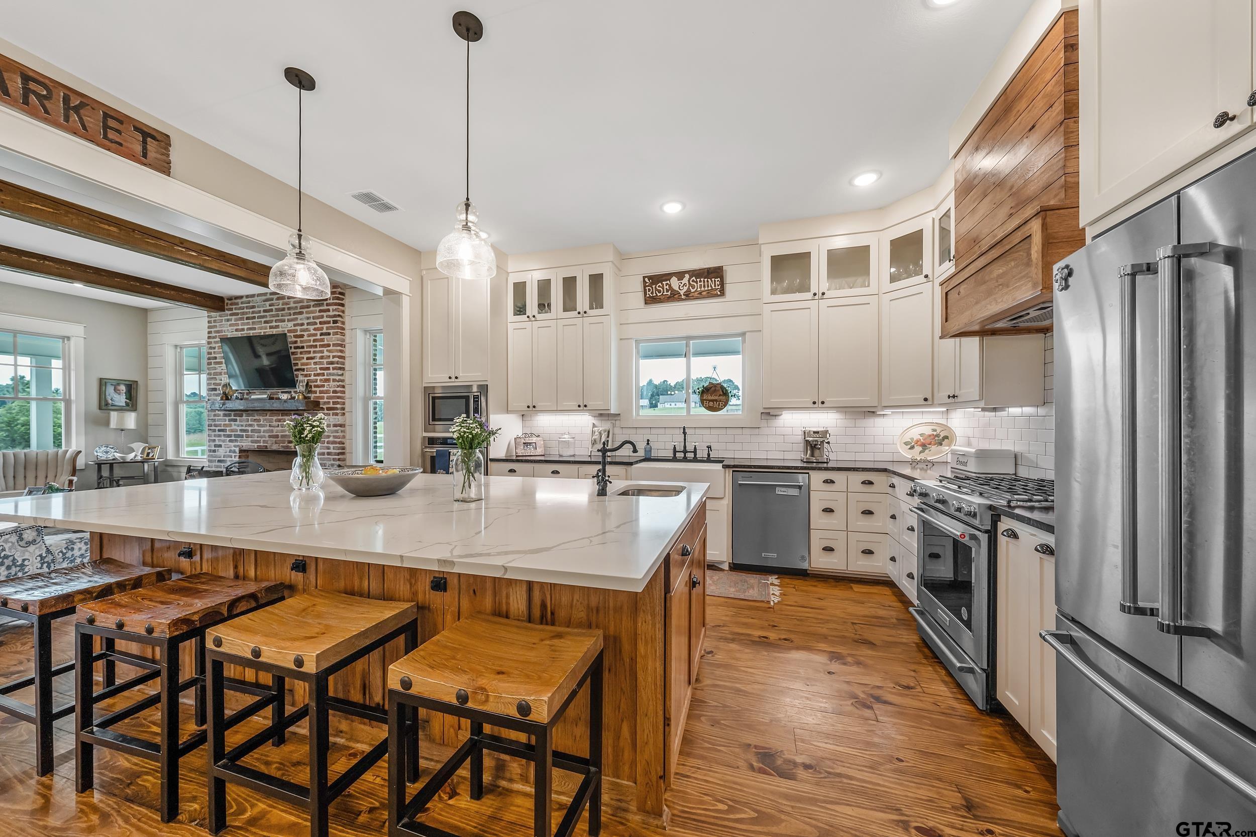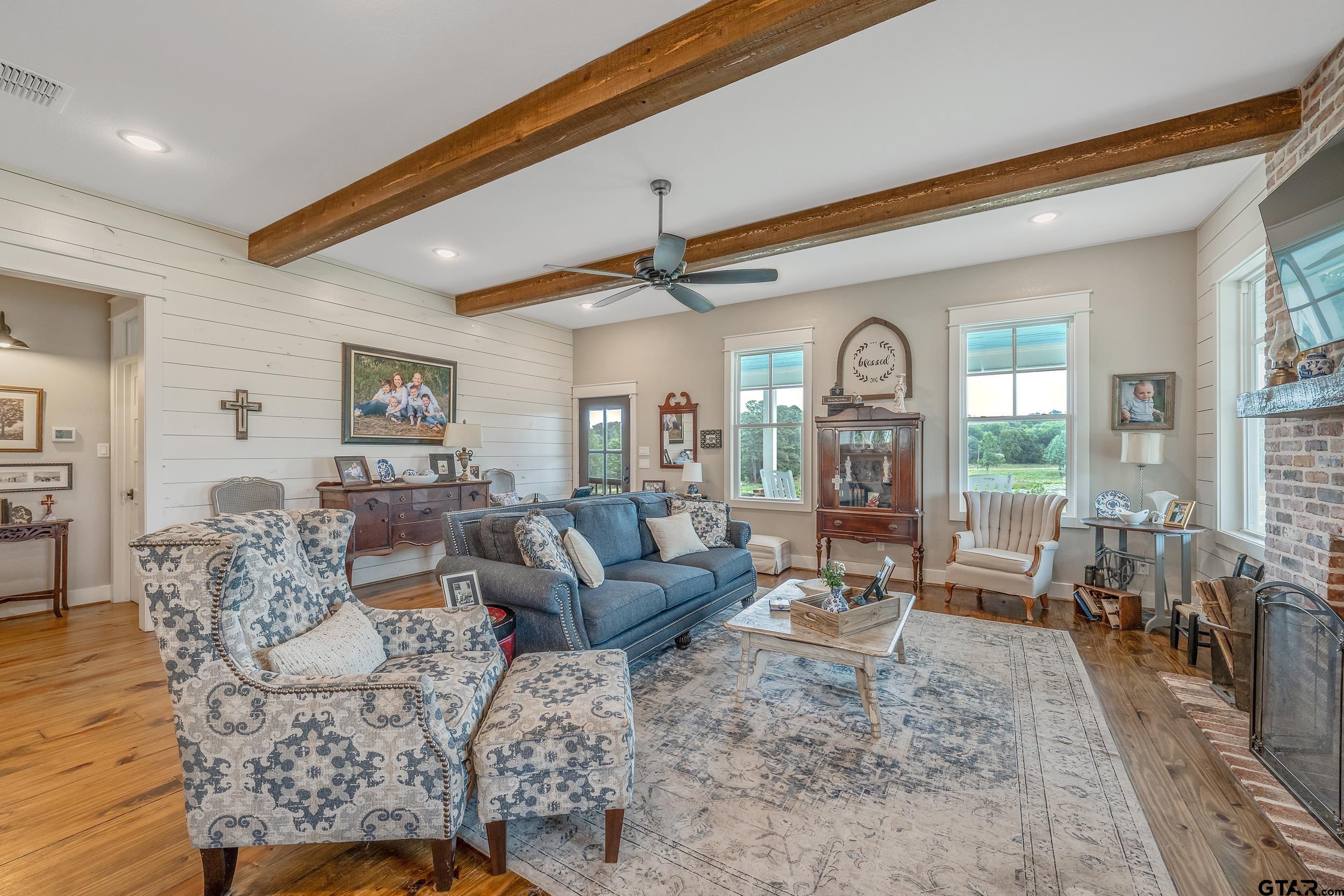 | EXQUISITE FARMHOUSE ESTATE ON 10 ACRES IN BULLARD ! WHERE TIMELESS CRAFTSMANSHIP MEETS MODERN LUXURY. This 4-bedroom, 3-bathroom farmhouse-style home, built in 2022, was meticulously crafted with the finest materials and unmatched attention to detail. Nestled on 10 breathtaking acres adorned with century-old oak trees, a private pond, and a charming red barn, this estate redefines refined country living. From the moment you step onto the wide wrap-around porch with its antiqued blue ceiling, you'll be captivated by the warmth and character that radiates throughout this one-of-a-kind property. Inside, 6-inch solid antiqued pine floors, 10-inch standing spruce beams, and walls clad in reclaimed shiplap create an atmosphere of timeless beauty. The living room's full masonry fireplace, built from 100-year-old reclaimed brick, is a true showpiece. The gourmet kitchen was designed for both entertaining and everyday living, featuring a massive 10-foot quartz island, stainless steel appliances, double ovens, leathered granite countertops, and custom cabinetry, all highlighted by soaring 10-foot ceilings. A durable metal roof, full spray foam insulation, and tankless water system ensure efficiency, comfort, and longevity. Two climate-controlled storage areas and a built-in tornado shelter add thoughtful functionality and peace of mind. The charming barn offers 600 additional square feet with a full bath, ideal for guests, a private office, or future entertaining space. Located in highly sought-after Bullard ISD, this property isn't just a home it's a lifestyle, offering the perfect balance of rustic charm & modern luxury. Builder willing to do any additional updates at cost. | |