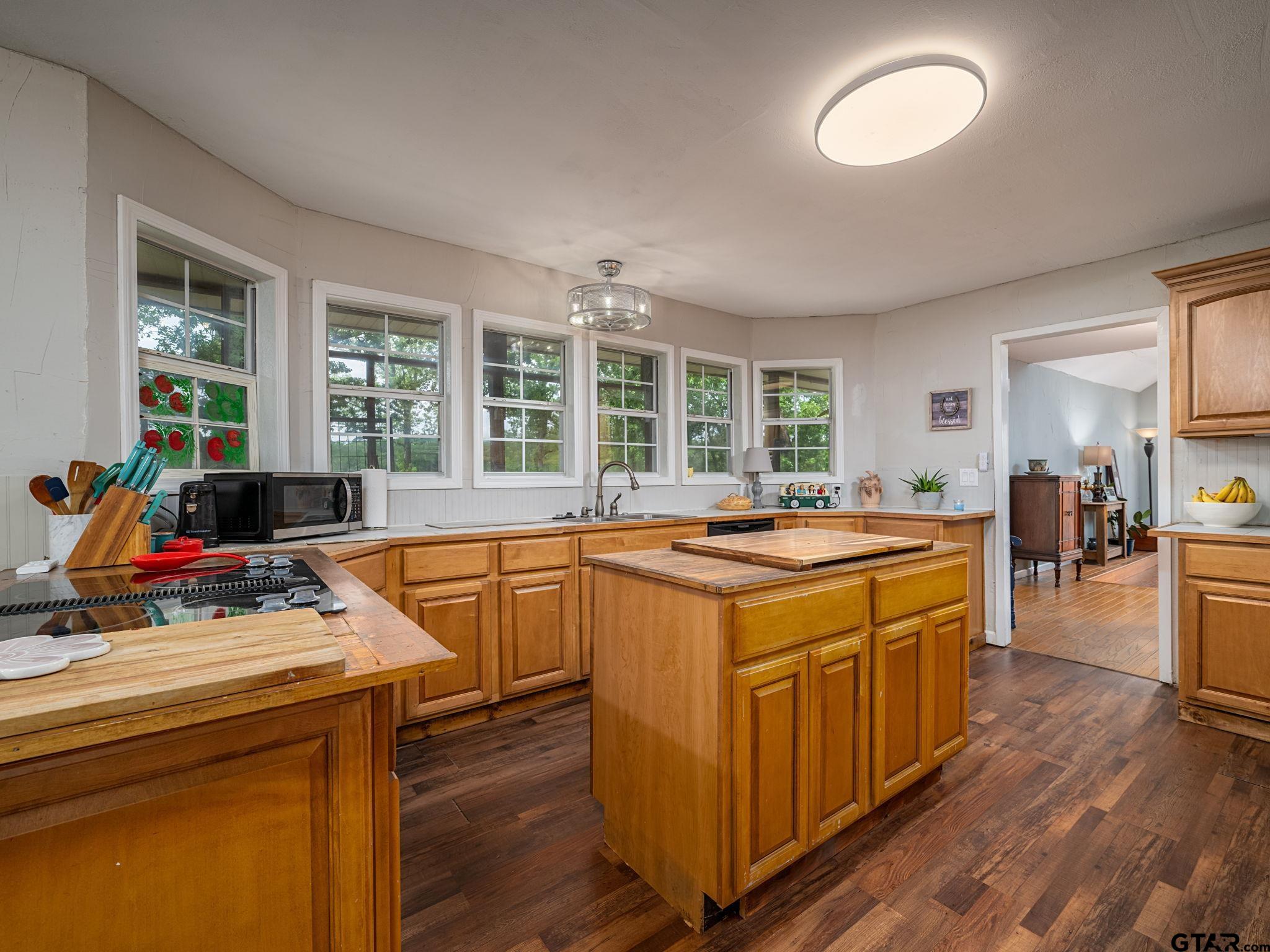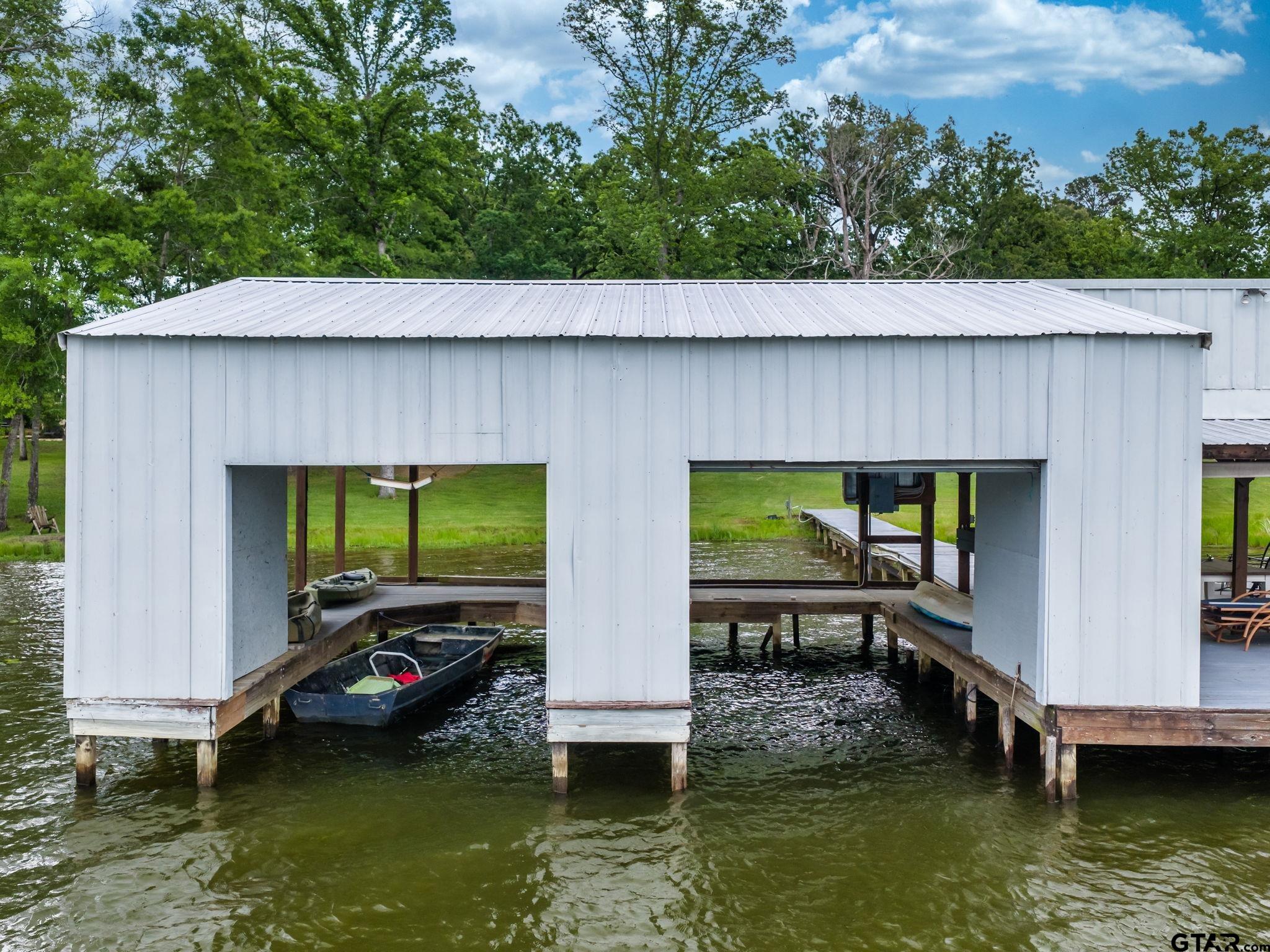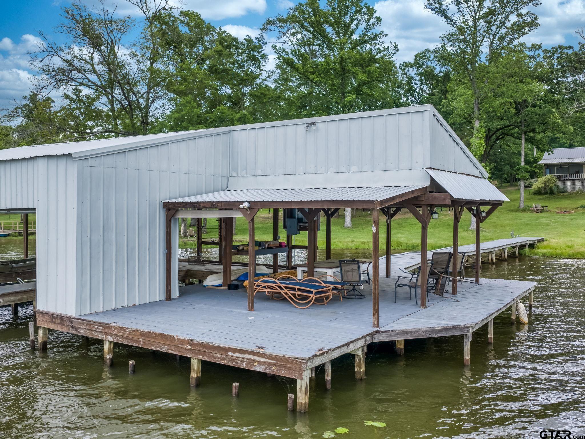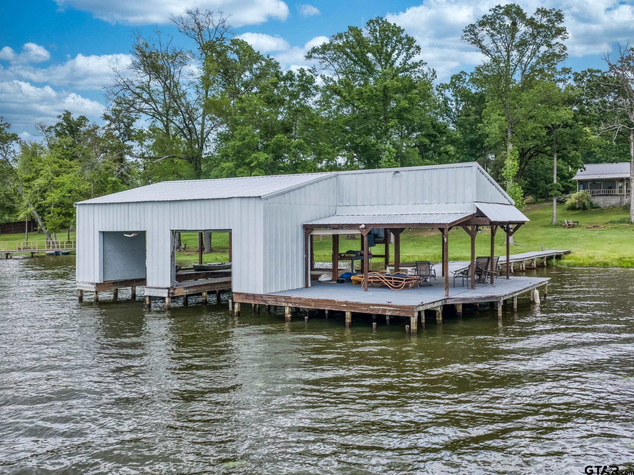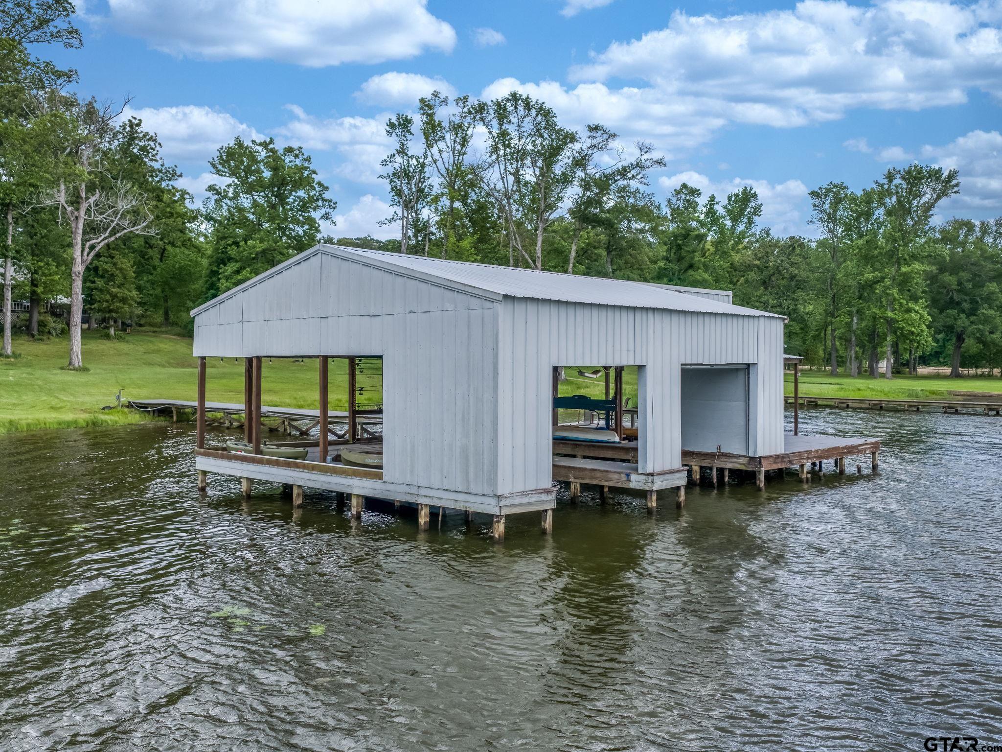 | Whether it's your permanent home, or a weekend retreat, this lake place has it all! The main house is a 3br/2ba with dining area off the living area, open kitchen with a breakfast area looking out at the lake, separate utility room, covered front and back porches and a circle drive. The second living quarters is a 3br/2ba with a huge open living area opening up to the kitchen. The metal building has a shop and a 1br/1ba living area. The boat house has 2 stalls with an opened and covered deck. 3.084 acres on beautiful Lake Tyler! Come make this place your home! | |