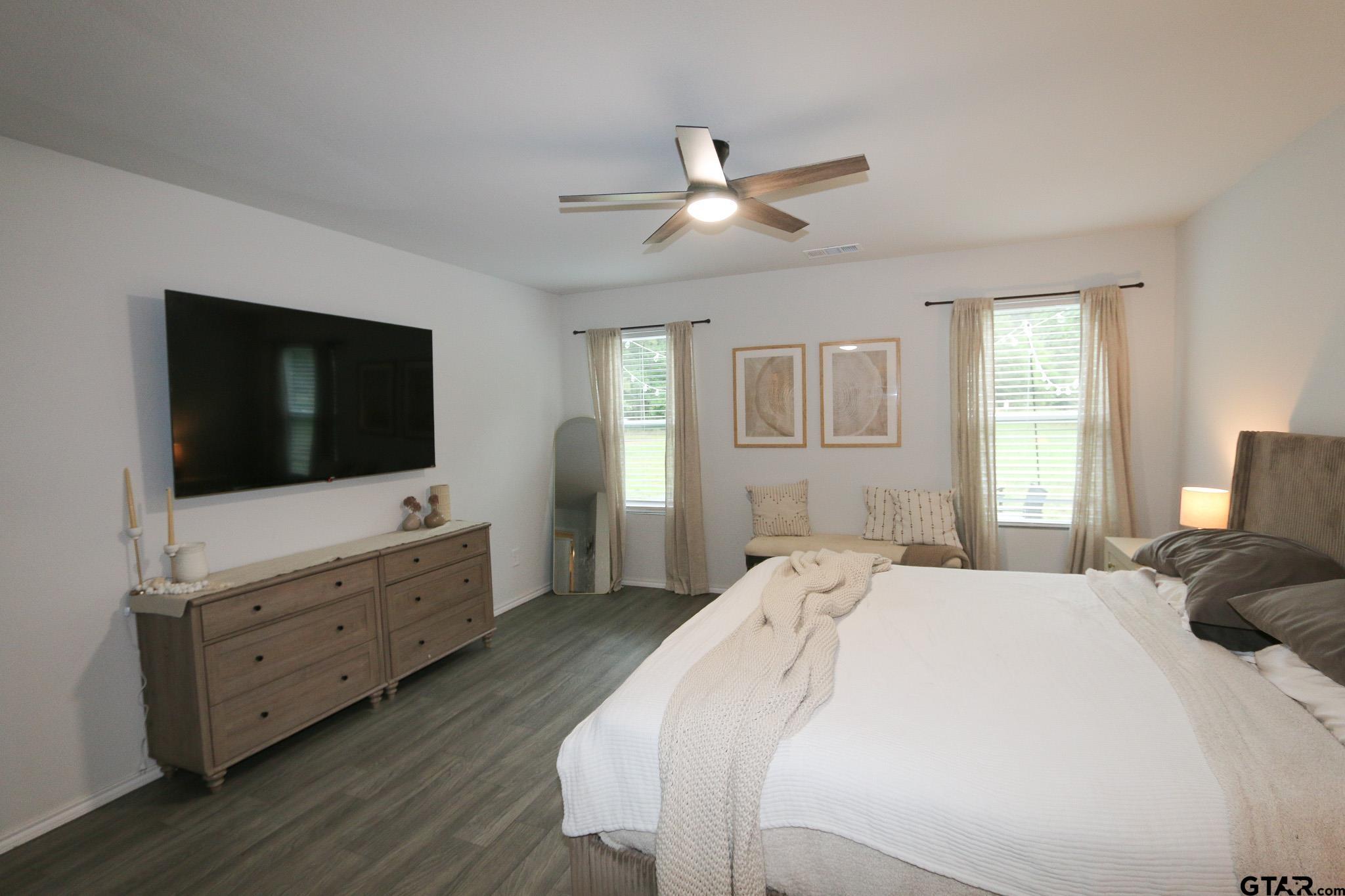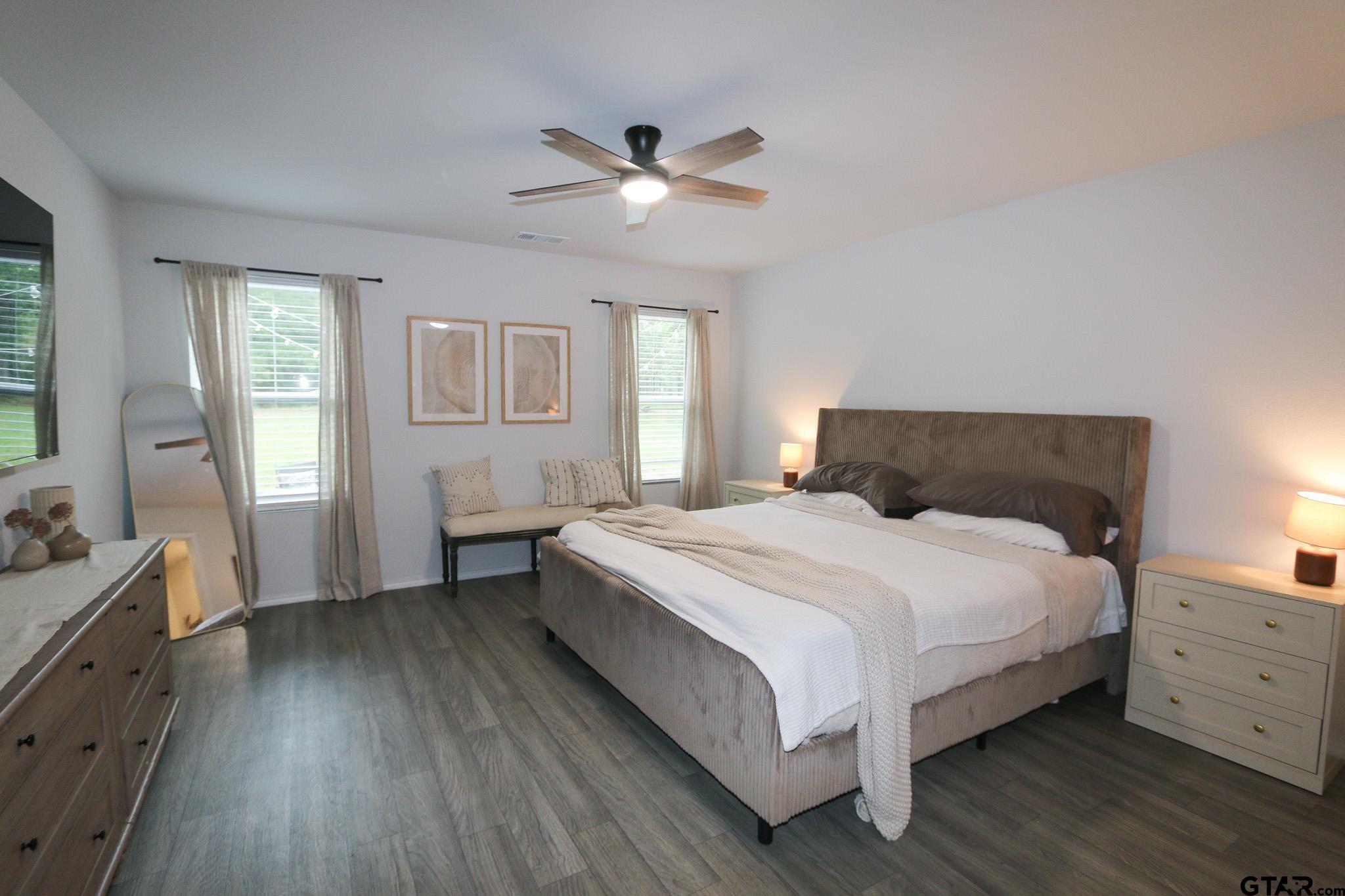 | This like-new home has so much usable space for family and entertaining. Very versatile floorplan with 2 luxurious primary suites (or mother-in-law suite), 6 total bedrooms, 3.5 bathrooms, media/gameroom/2nd living area and an abundance of storage. The main level includes one primary suite, guest bedroom (or office), half-bathroom and spacious open living area. The kitchen is tastefully designed with shaker-style cabinets, stainless appliances and bar area with stylish pendant lights. Some upgrades include wood-faux blinds, gutters, landscaped yard and designer lighting and mirrors. River Oaks at Sawmill is a newer neighborhood with sidewalks and is located in Chandler, that has a small-city feel and is only about 15 minutes from Tyler, a much larger city with tons of shopping and restaurants and a quick drive to Lake Palestine. Welcome to Your New Home! | |