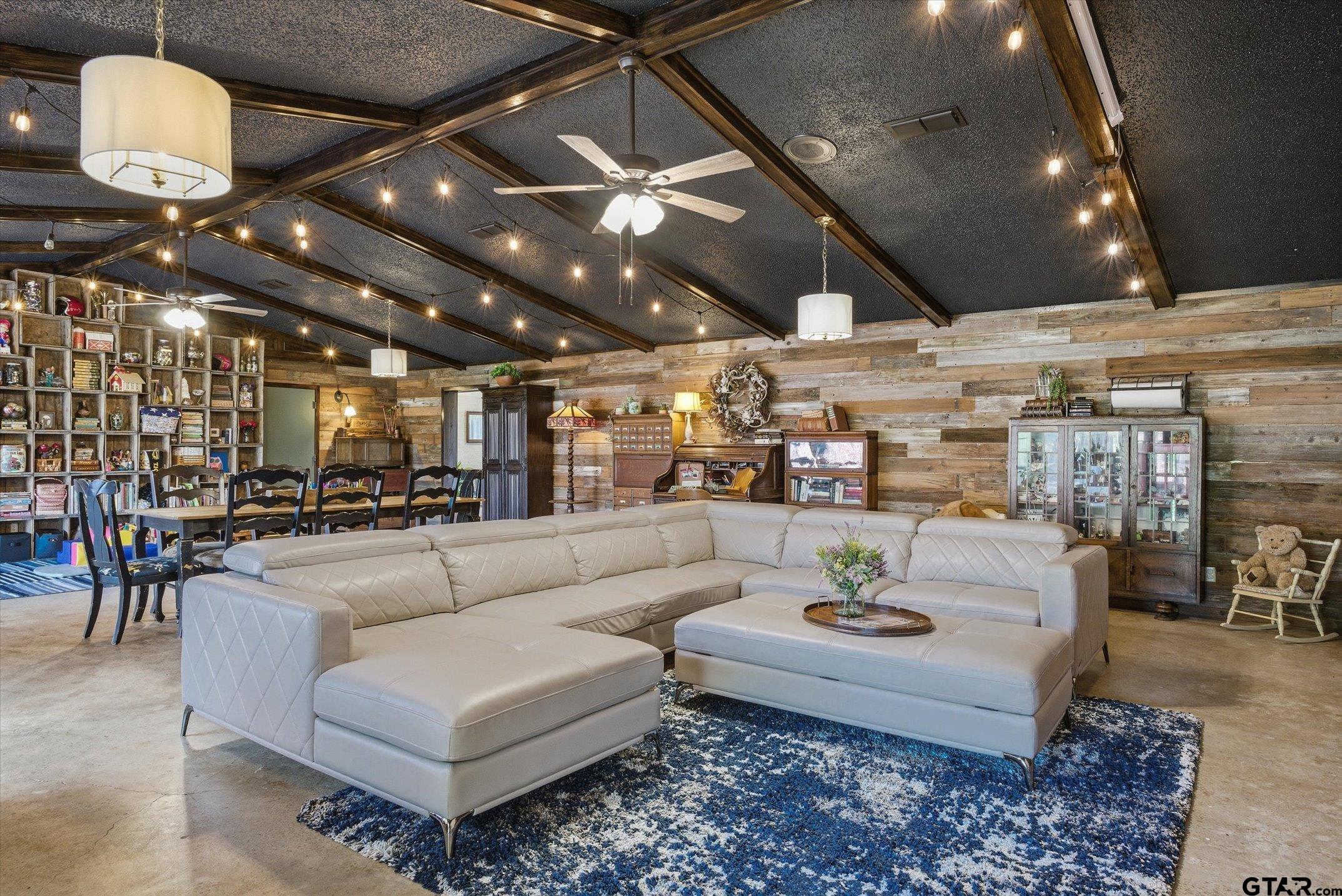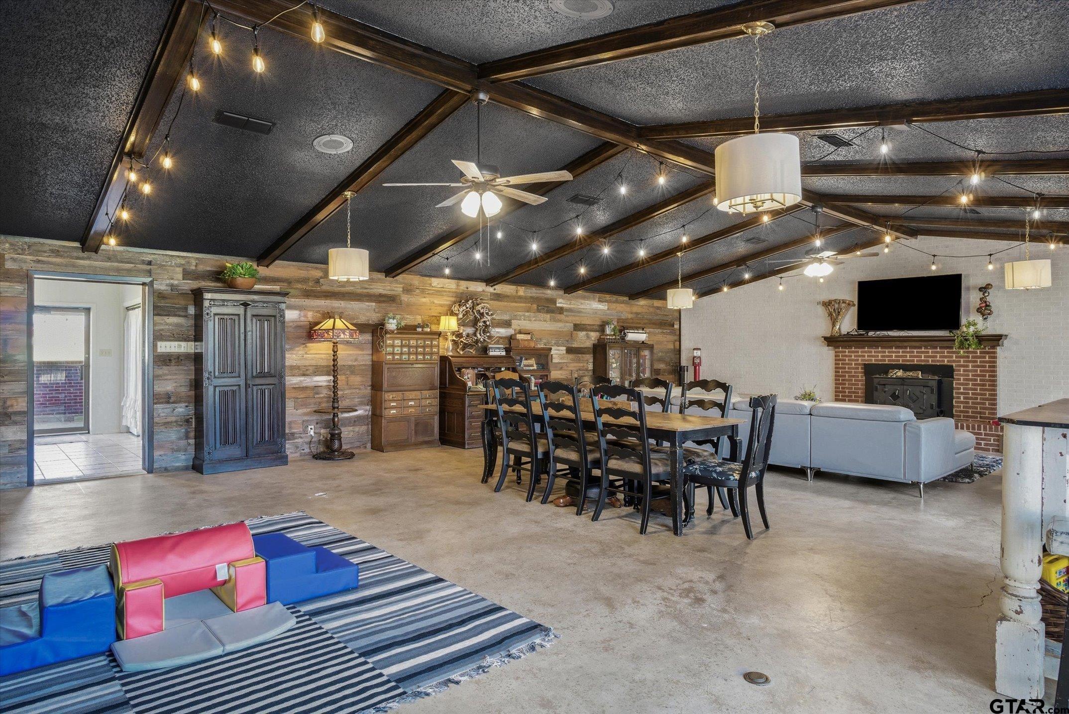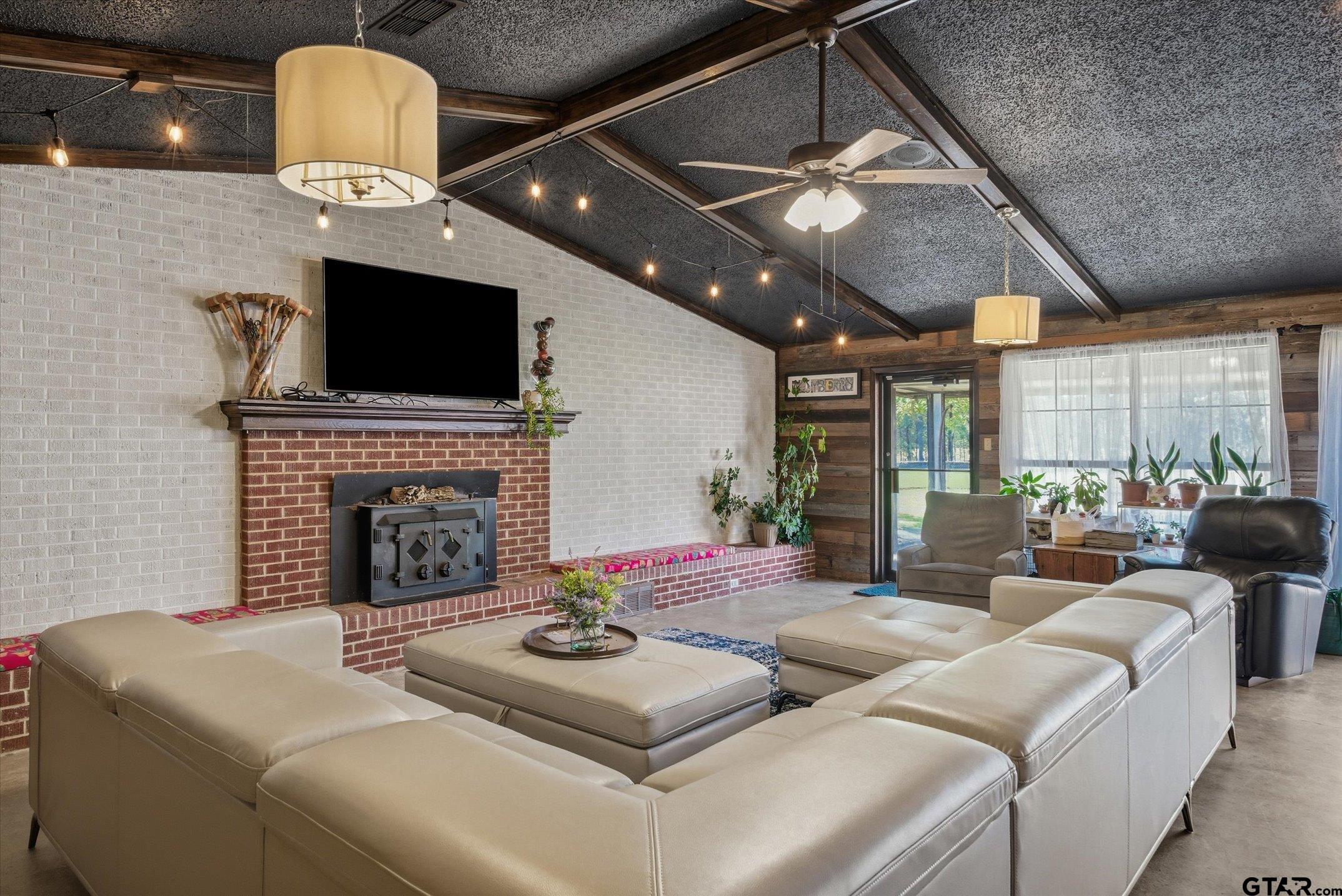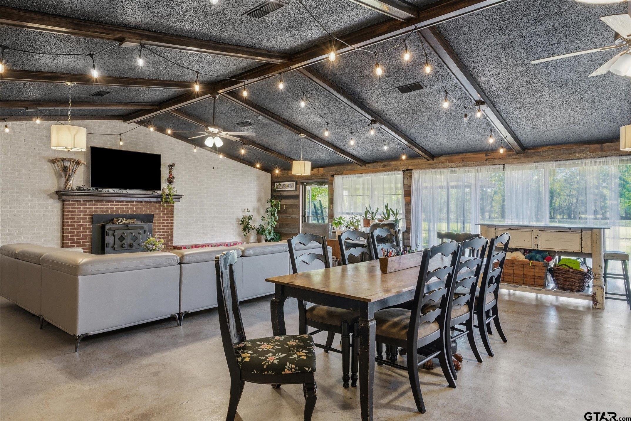 | Brimming with character and creative charm, this spacious 3,800 SF brick home on 2.69 acres offers endless possibilities! Featuring 5 bedrooms, 3.5 baths, multiple living areas, and thoughtful updates throughout, it's ideal for a multi-generational household, private retreat, or event venue. The remodeled kitchen is a showpiece! with a butcher-block island repurposed from a bowling alley, butler's pantry, and plenty of storage. The living room off the kitchen brims with sweet charm and one of two WBFP. The 1,000 SF den impresses with vaulted ceilings, large brick real fireplace, stained concrete floors and antique wood boxes forming a stunning shadow-box wall. Recent upgrades include HVAC, replaced plumbing pipes, new fireplace caps, and fiber-optic internet. A separate MIL suite with outside entry provides flexibility and privacy. Enjoy ample concrete parking for groups or a large family of drivers, a 2-car carport, and an oversized 2-car garage with six storage rooms. The multipurpose shop and barn with electricity offer room for projects, inventory, or livestock! with a fenced pasture paddock. This property is perfect for large gatherings or weddings, this property radiates warmth and personality. The covered back patio faces an open pasture and beautiful surroundings. The open land beside the home can be room for an additional home or parking for a venue with road frontage on two sides of this property. Just 4 miles from Canton First Monday Trade Days and within desirable Edgewood ISD! one truly feels like home and has so much to offer! | |