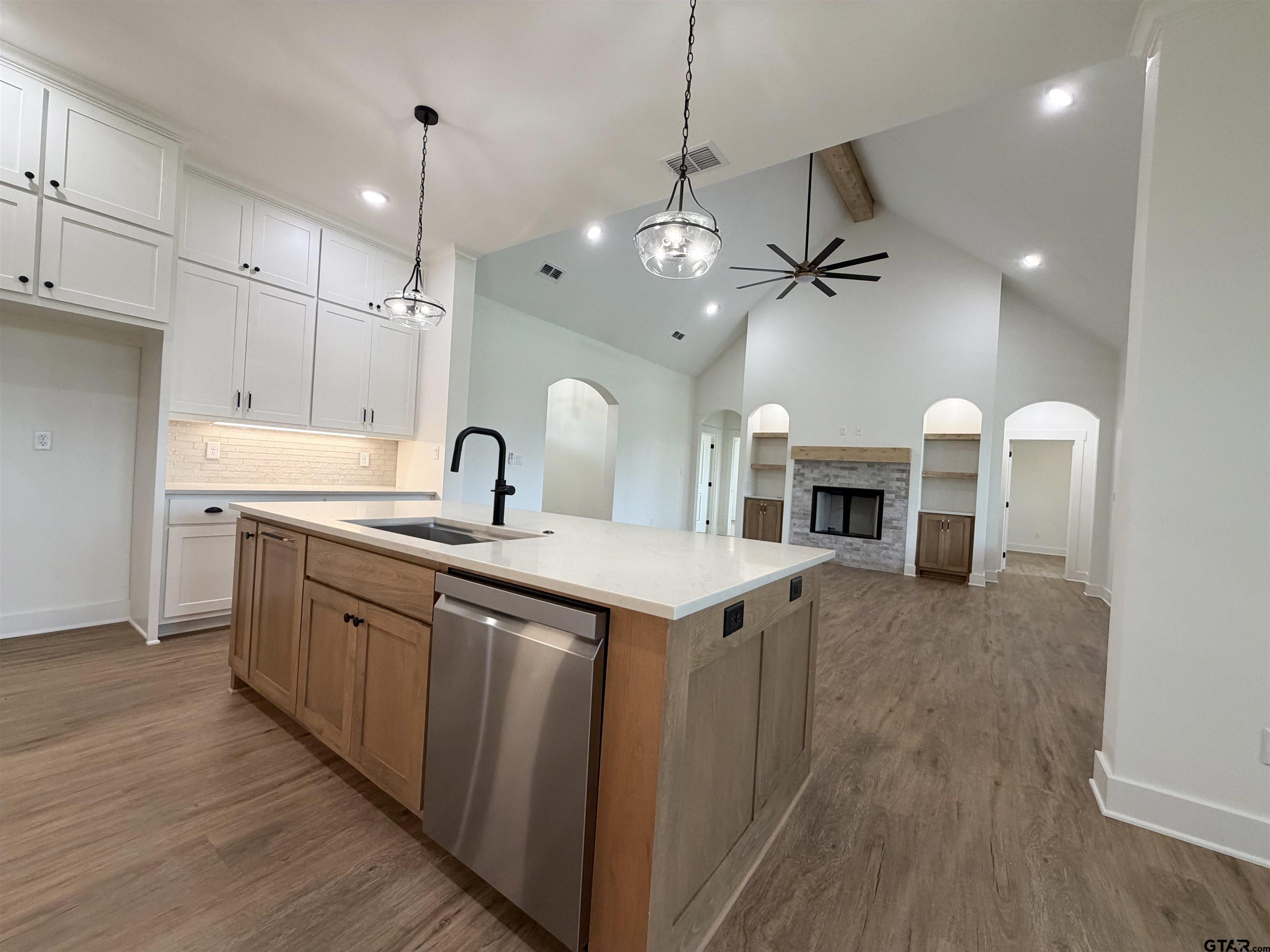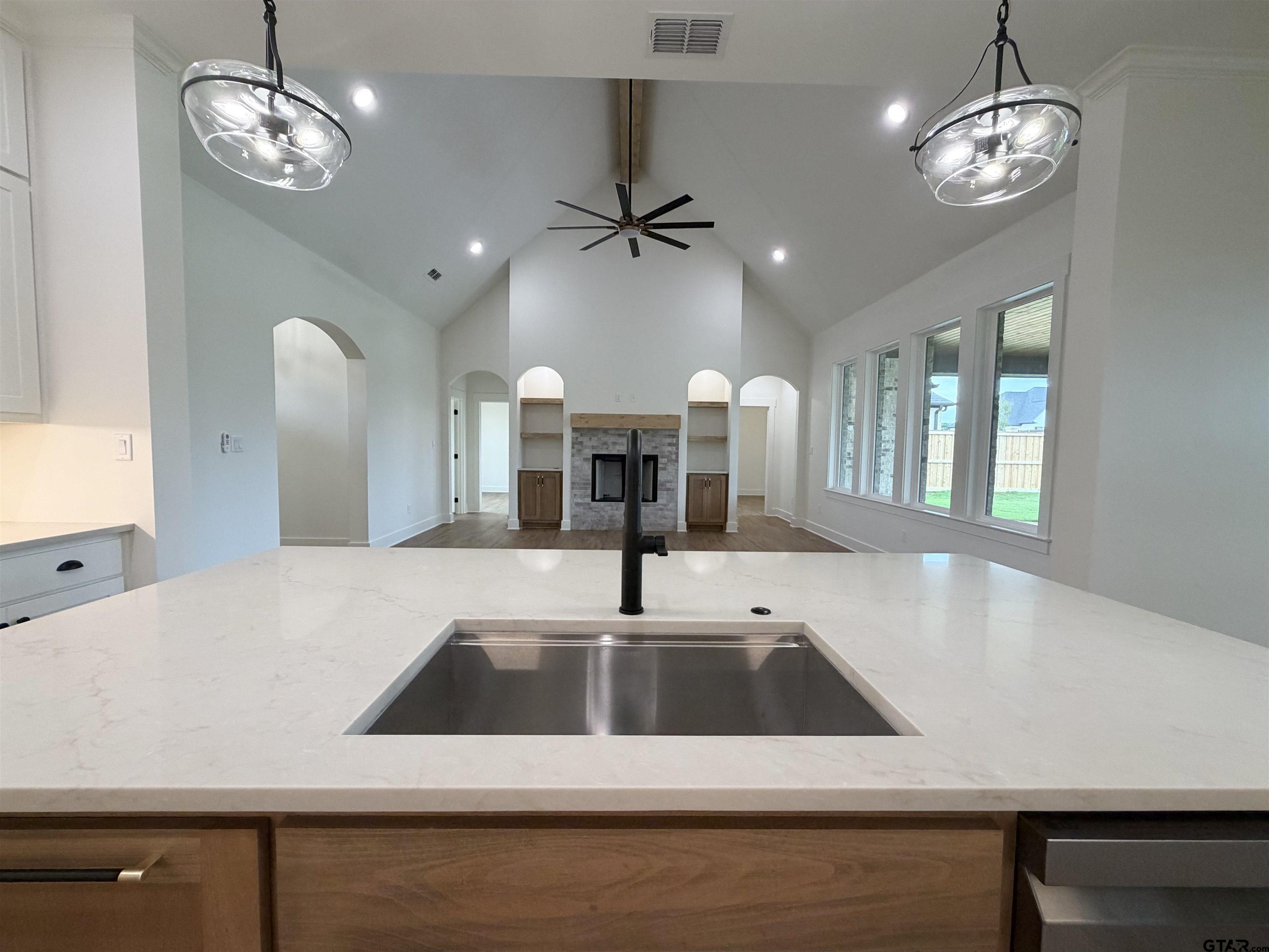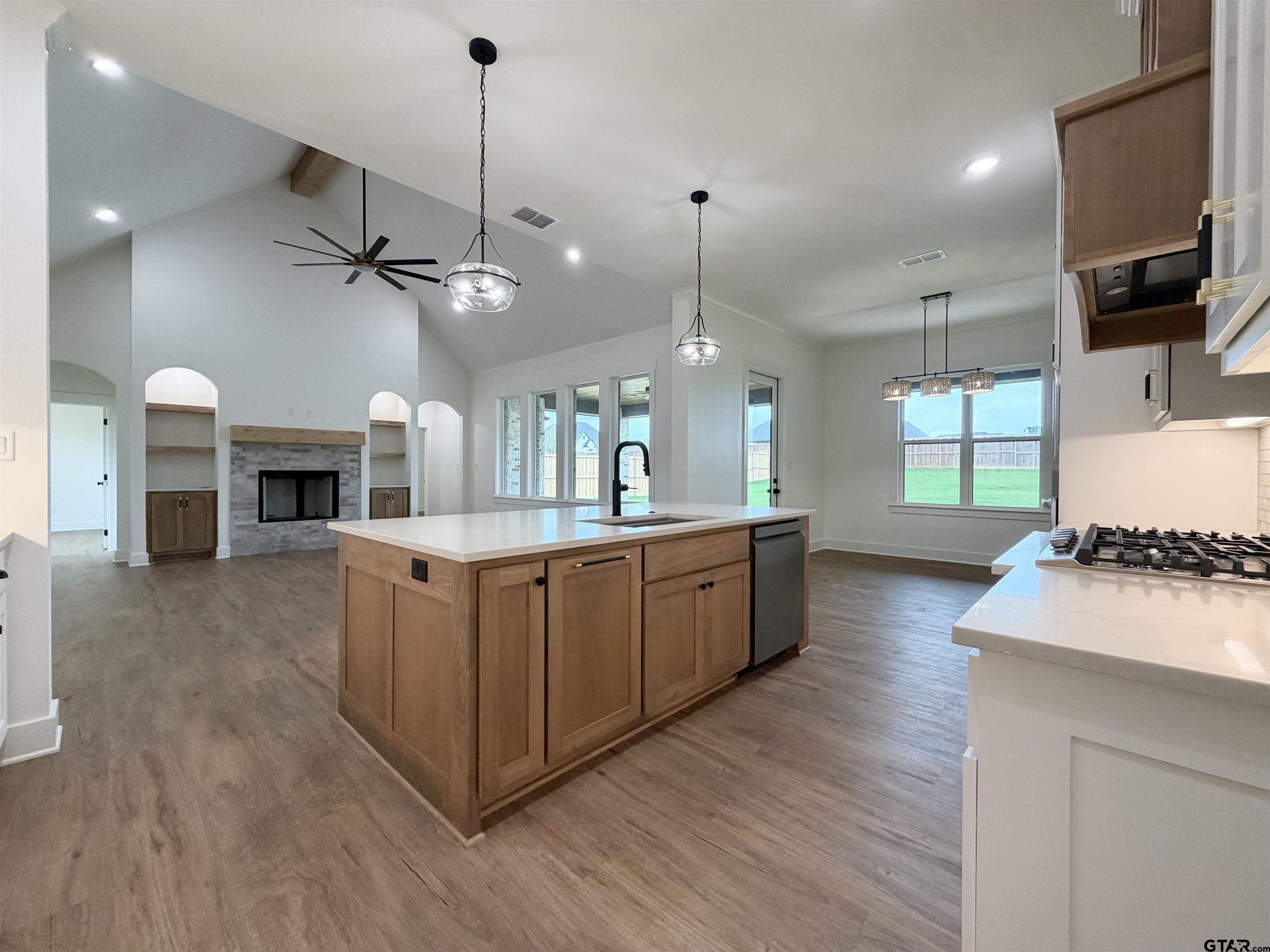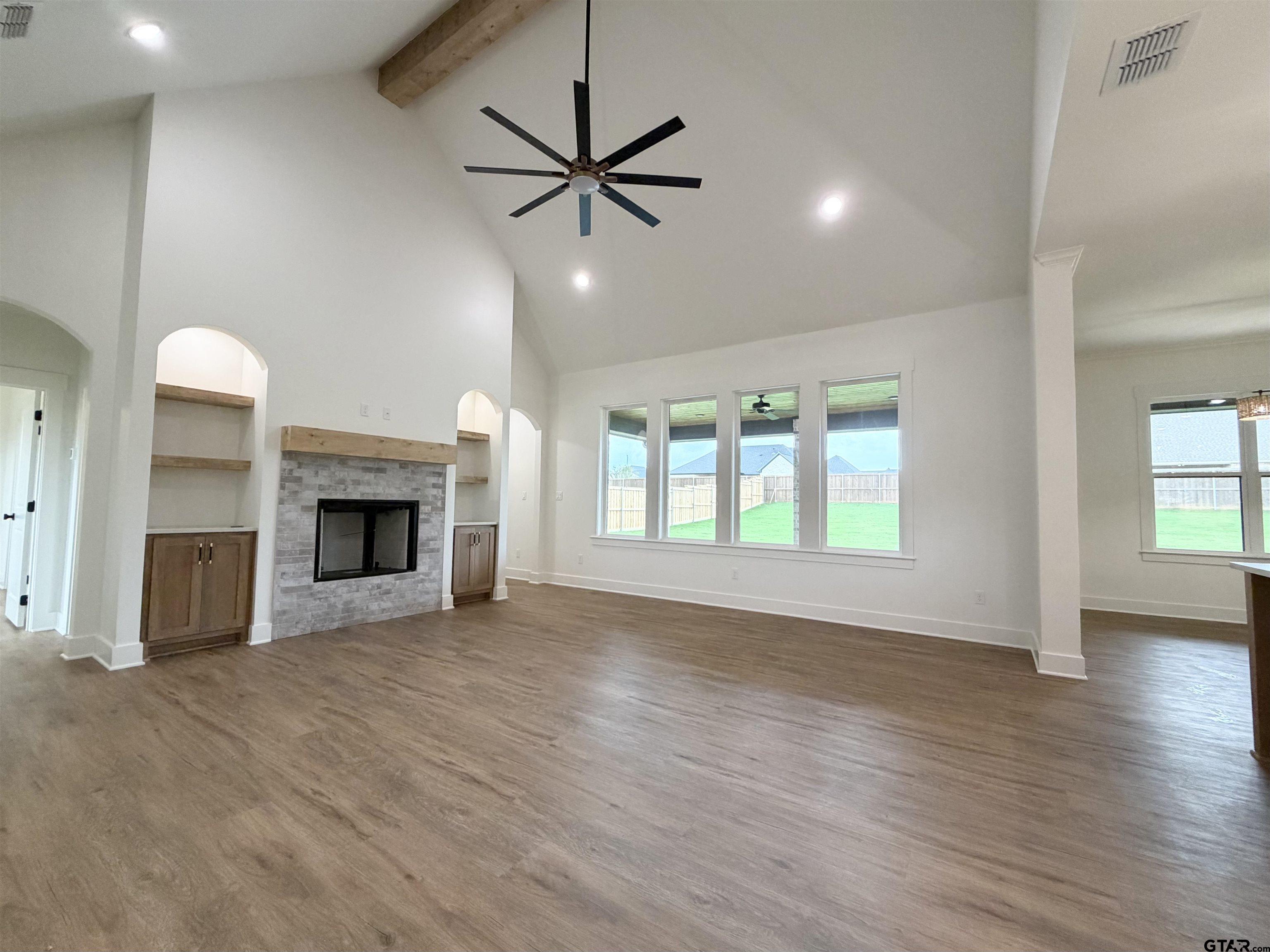 | Welcome home to this beautiful new build in sought-after Bullard ISD, tucked into a family-friendly neighborhood. This 4 bed, 3 bath home plus a dedicated office with an accent paneled wall offers 2,579 sq ft of smart, comfortable living. The open kitchen is a standout with Taj Mahal quartzite countertops, stainless appliances, a large eat-in island, and a statement hood that anchors the space. The living room features vaulted ceilings, a stunning fireplace, and built-in cabinetry with decorative shelves. A split bedroom layout in three directions adds privacy for everyone. The spacious primary suite includes separate vanities, a walk-in shower, soaking tub, and a dreamy walk-in closet that connects directly to the laundry room with cabinets and extended counter space. You'll love the 3-car garage, mud space, and oversized walk-in pantry right off the garage entry. Out back, enjoy an entertainer's dream covered patio with space for both living and dining. Other features include spray foam insulation and energy efficient 2 tier HVAC system. This home blends style, function, and everyday comfort in all the right ways! | |