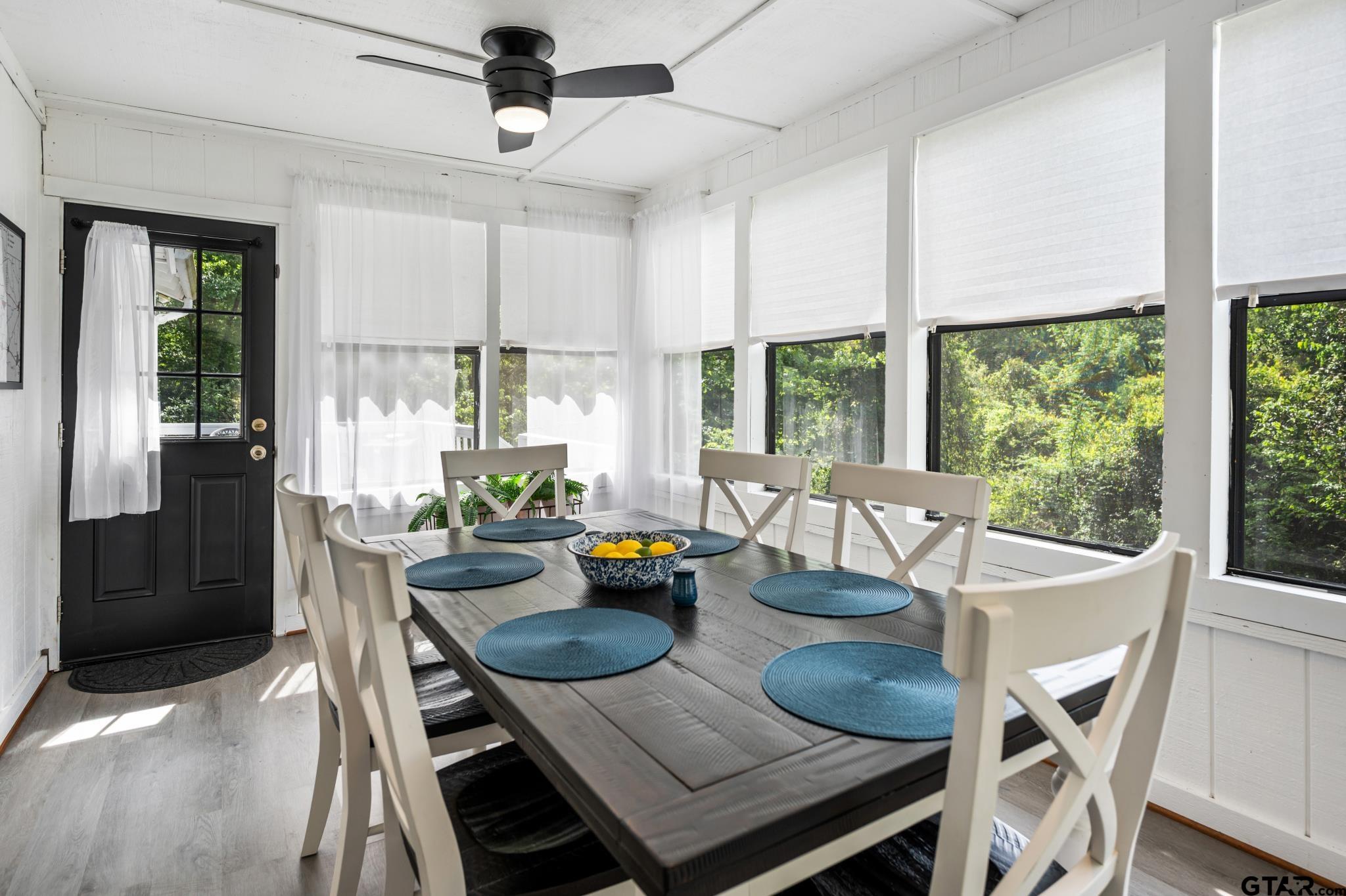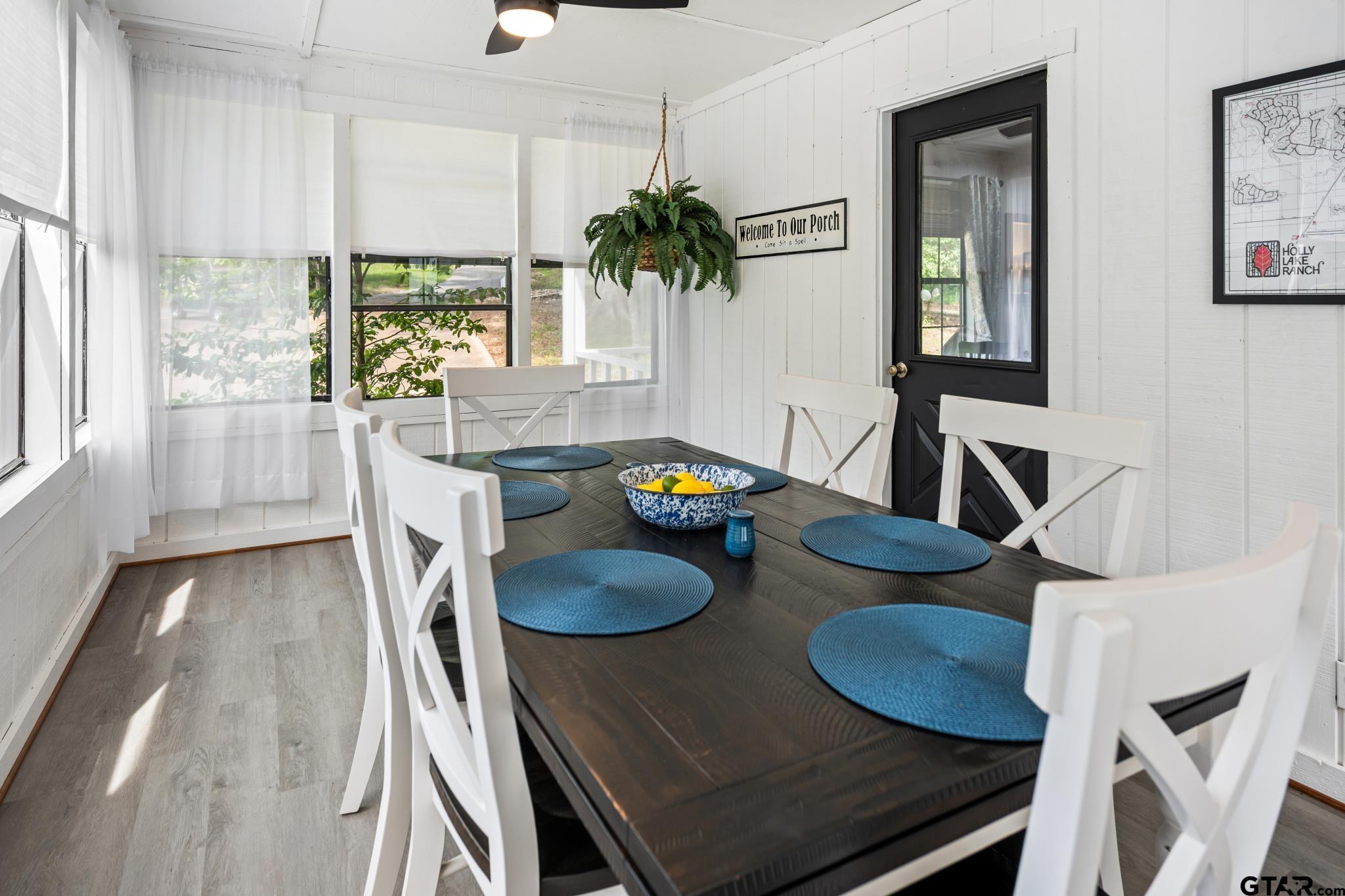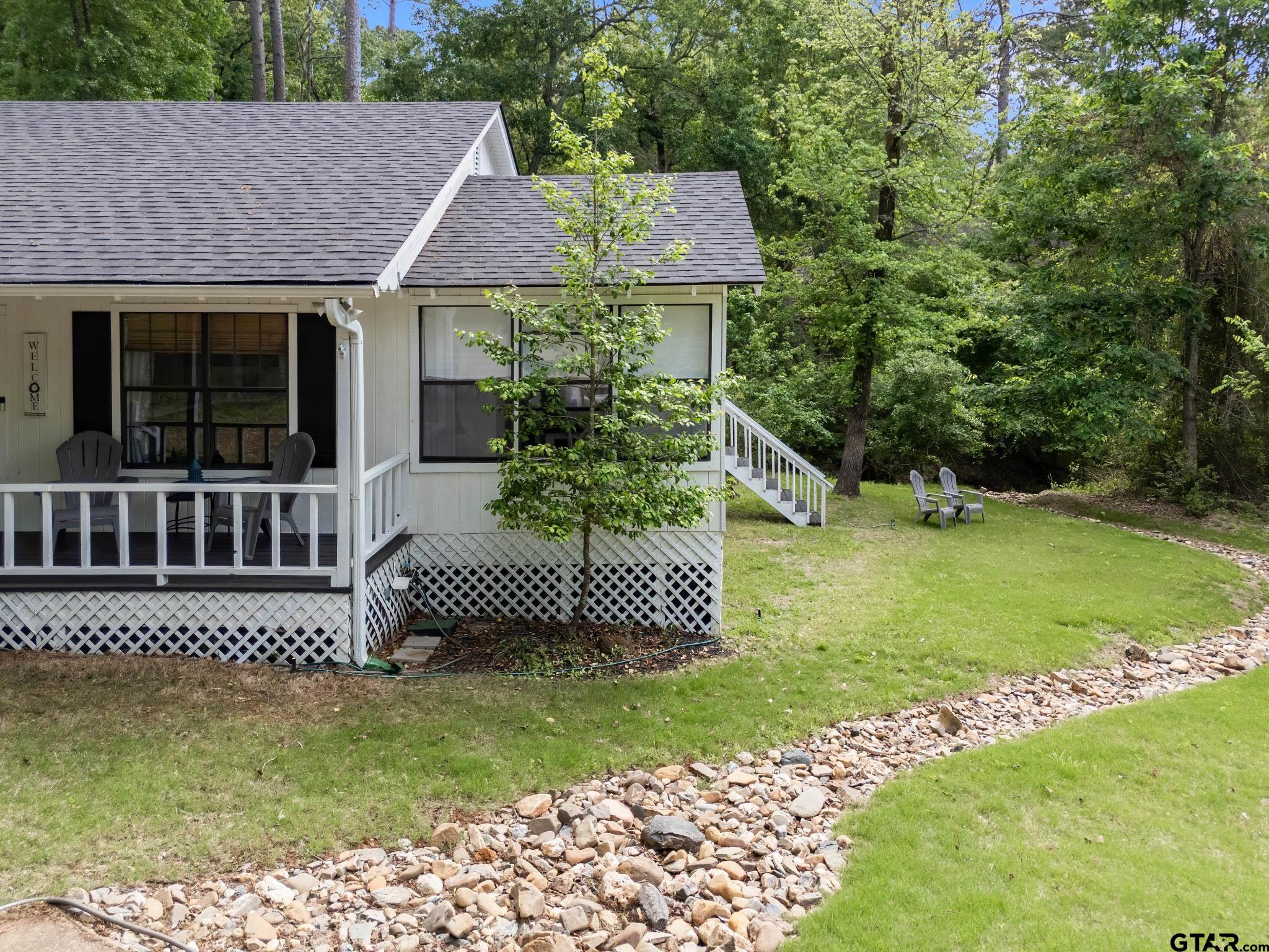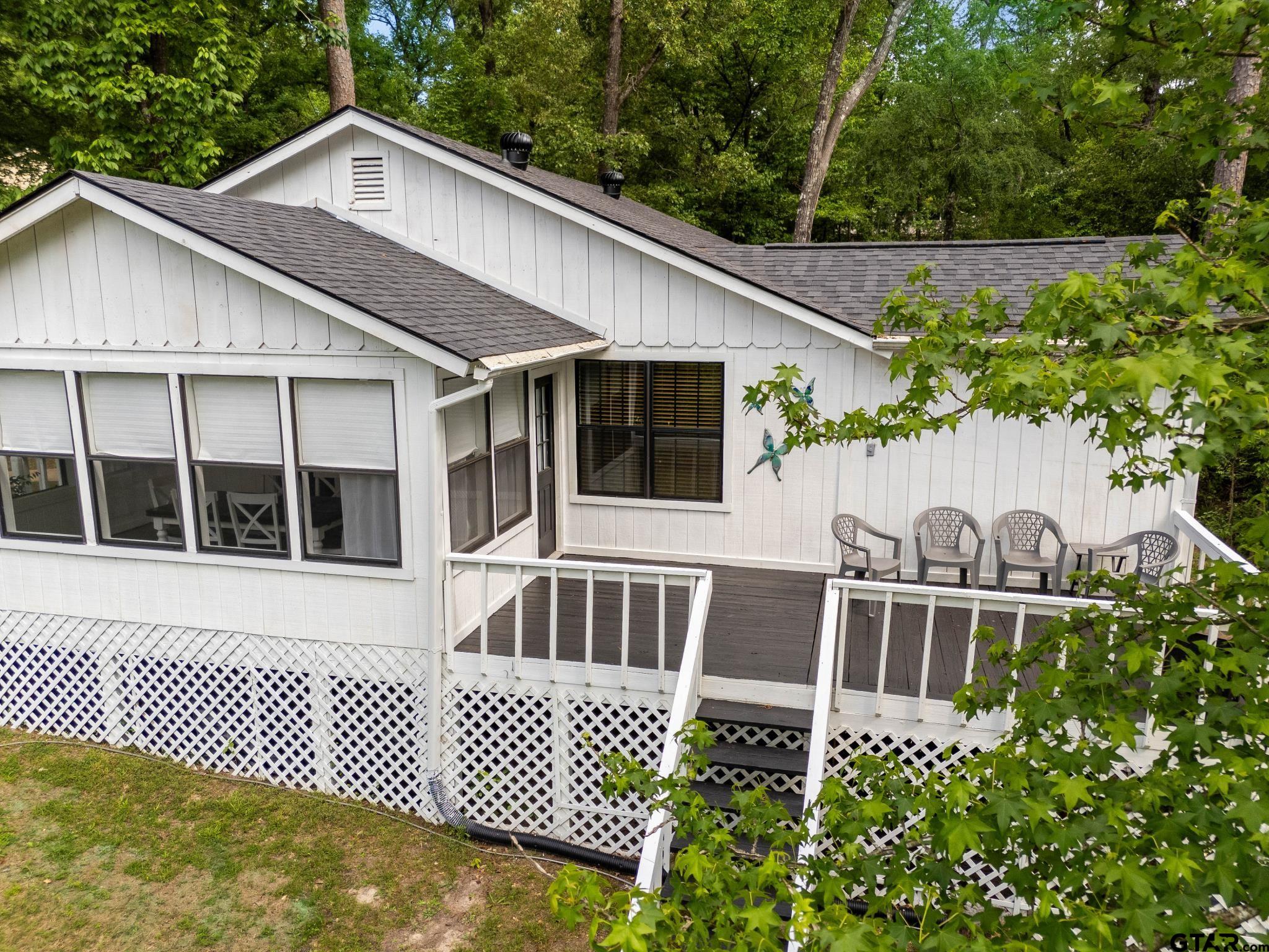 | Welcome to Fawn Creek Cottage - named for the deer and fawns often seen crossing the nearby creek bed. This house is tucked away at the end of a quiet cul-de-sac. This charming 2-bedroom, 2-bath home offers a peaceful setting on a beautifully maintained lot. Thoughtfully updated and meticulously cared for, this home truly stands out for its condition and attention to detail. A concrete driveway and walkway lead to an inviting front porch! ideal spot to enjoy a morning cup of coffee or unwind in the evenings while taking in the natural surroundings. Inside, you'll find wood floors, a cozy fireplace, freshly painted walls and cabinets, newer appliances, and a recently updated water heater. Additional improvements include updated bathroom fixtures, modern lighting, custom window coverings, and plumbing and electrical systems ! the consistent care and quality updates throughout the home. The dining porch is a favorite feature, offering lovely views of the newly landscaped yard and a comfortable space for everyday meals or casual gatherings. The private deck! stained! a quiet place to relax or entertain friends and family. Recent major updates include a new roof (2025, Class 3 shingles) and an aerobic septic system (2025, still under warranty), adding peace of mind for the next owner. This home has been exceptionally well maintained, making it truly move-in ready. Furnishings and decor are available with a separate agreement for added convenience. Located within the gated community of Holly Lake Ranch, residents enjoy access to 24-hour security, lakes, an 18-hole golf course, pickleball and tennis courts, swimming pools, a fitness center, miniature golf, frisbee golf, a dog park, and scenic hiking trails! complimented by a welcoming community atmosphere. Located within two hours of the Dallas metroplex and one hour from Tyler and Longview. | |