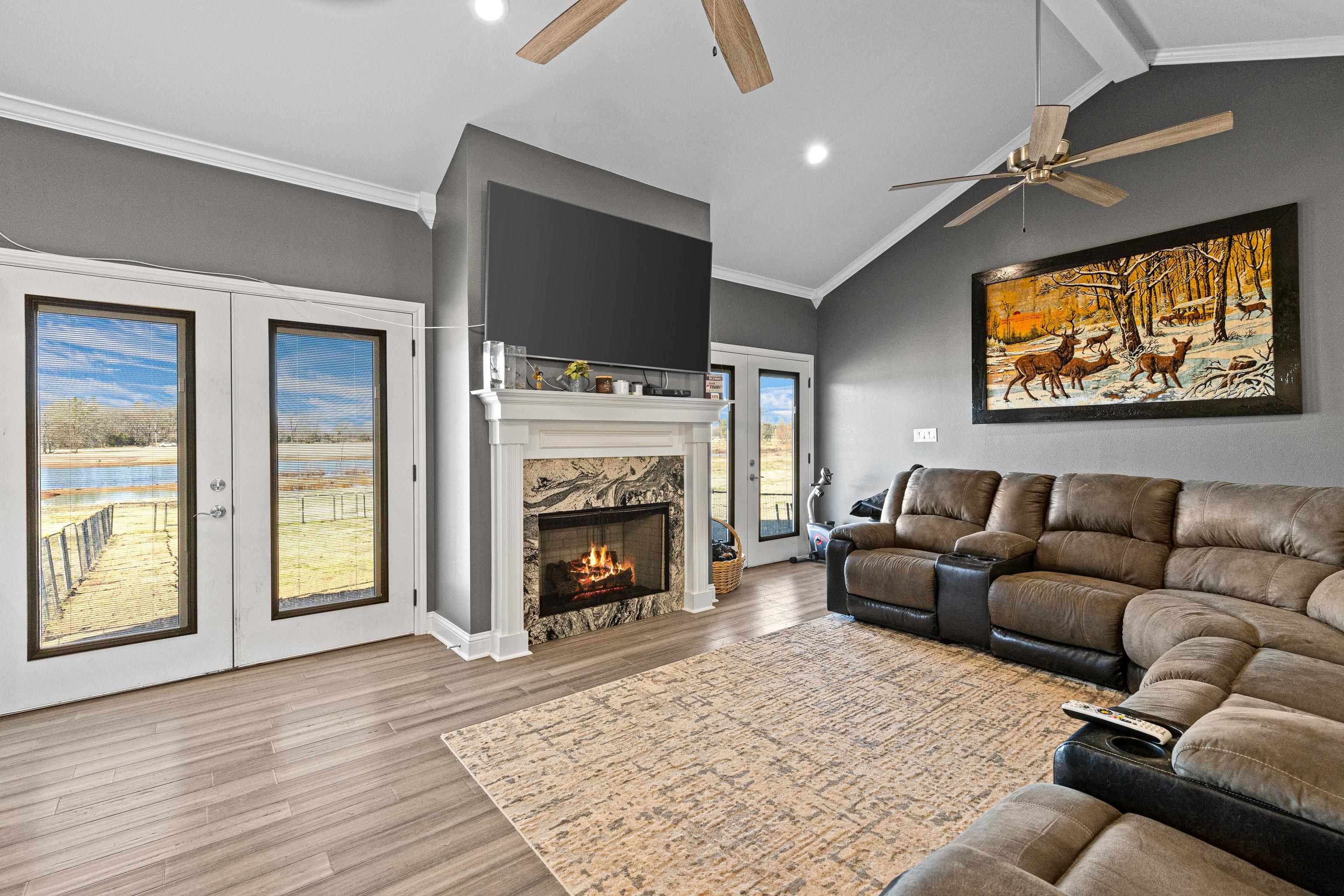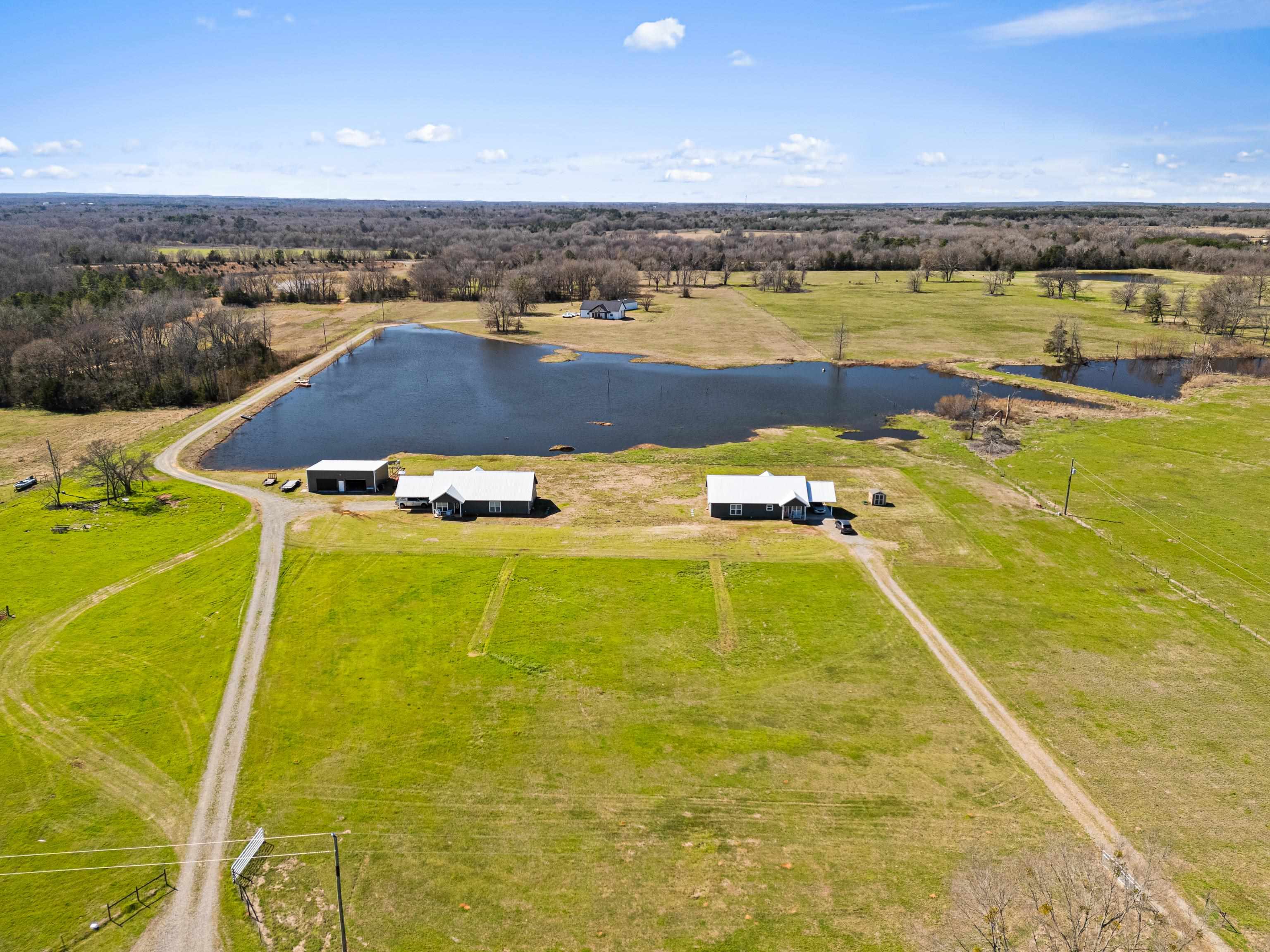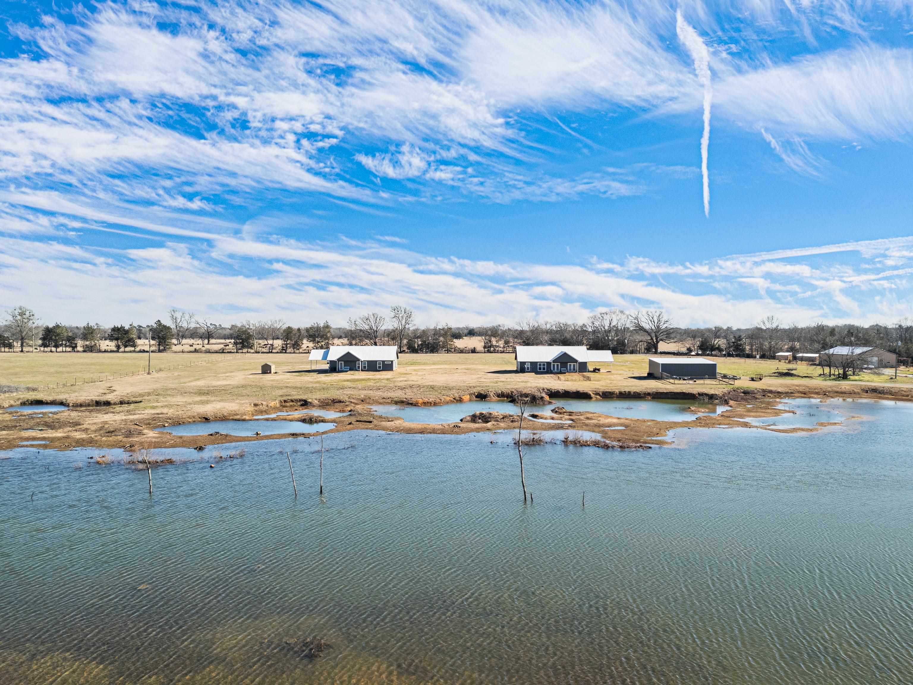 | FISHERMAN'S PARADISE WOW! SO MUCH TO OFFER! 16.25 beautiful acres, fishing pond for the fisherman, 2 Beautiful homes built in 2022. Open floor plans with pretty ceiling treatments. Kitchen features built in microwave, decorative backsplash, ornamental molding, Living room boasts vaulted ceiling, light hardwood wood-style flooring, ornamental molding, ceiling fan, and a fireplace. Master baths have a HUGE tiled shower, and a wealth of natural light. You will LOVE the huge insulated shop. Buy 2 homes together or 349 CR 3104 can be bought separately with 2 acres for $349,000 | |