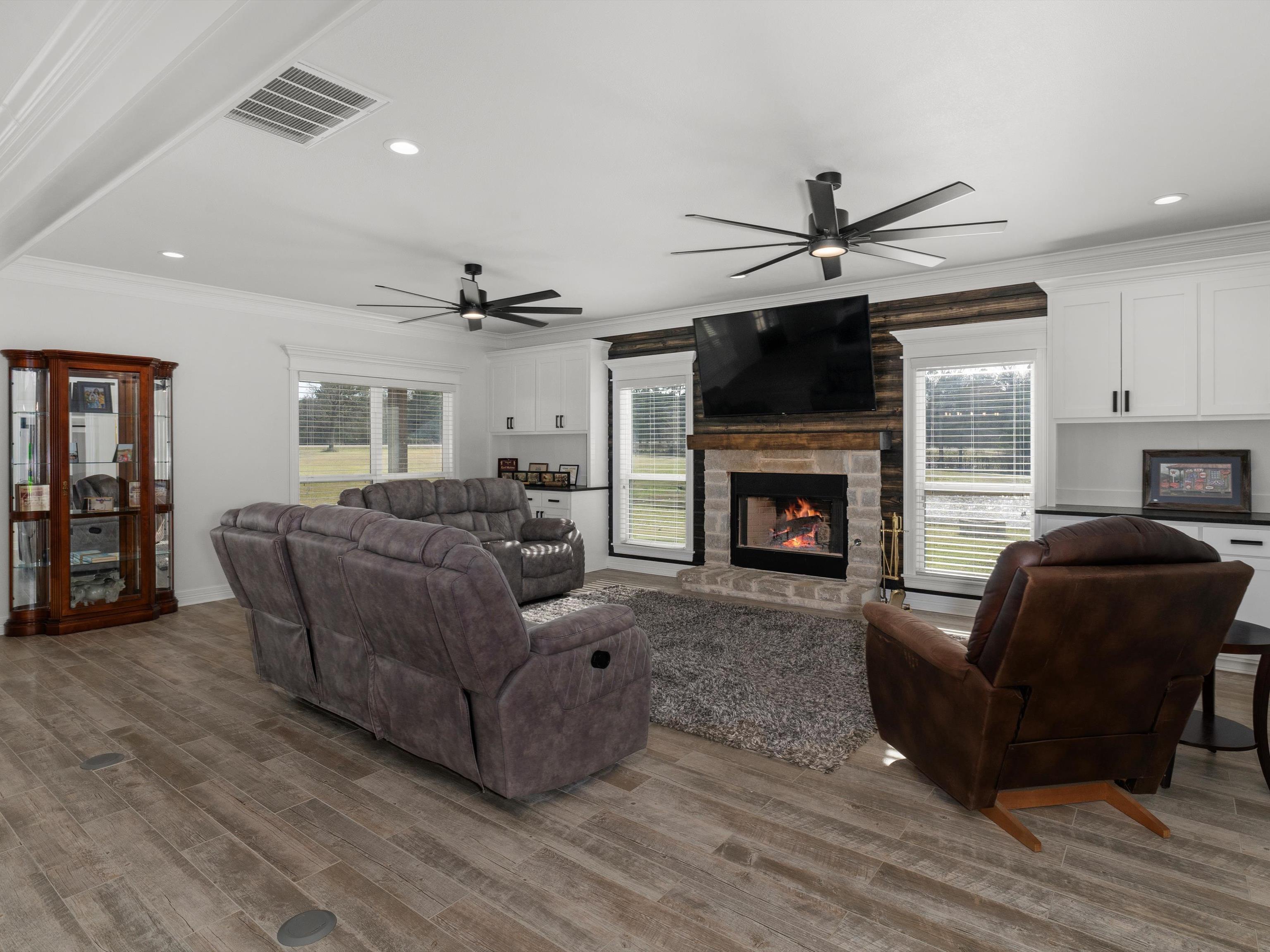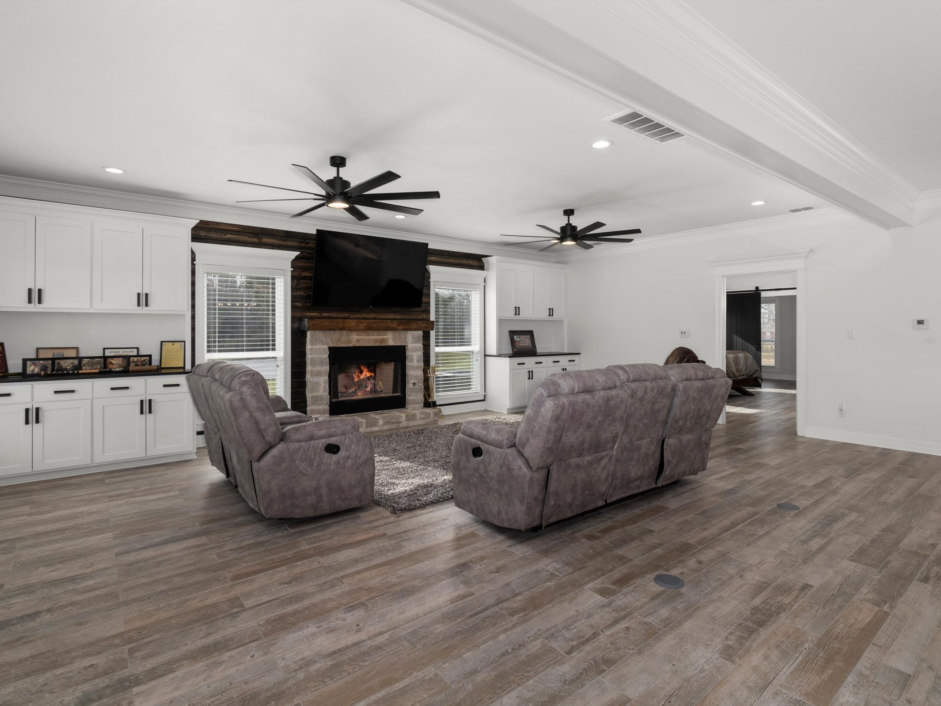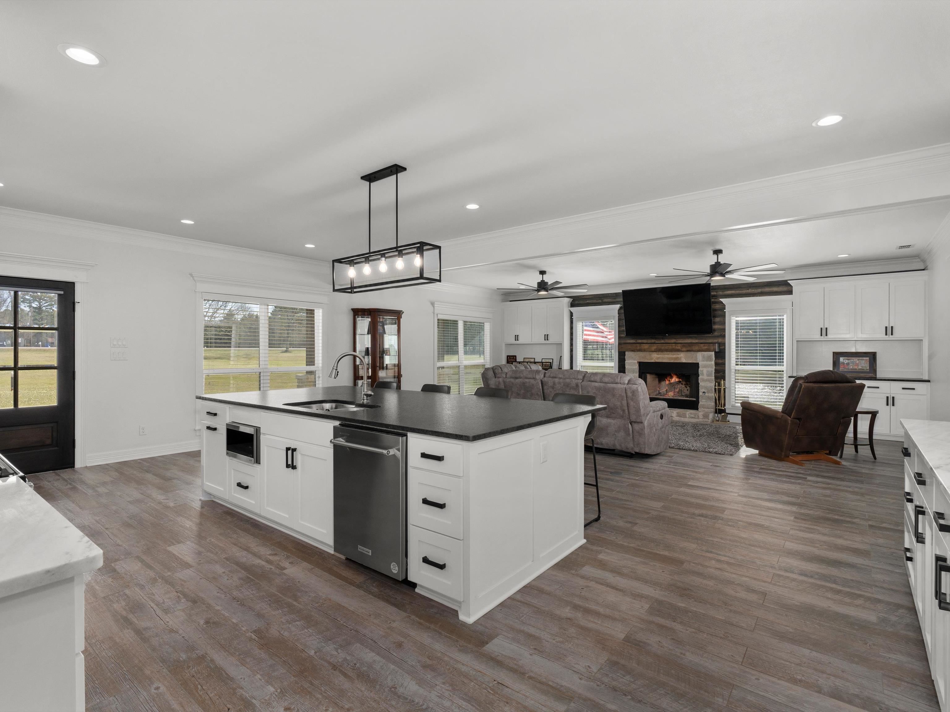 | Welcome to this stunning custom-built home, where modern luxury meets country charm! Thoughtfully designed and beautifully crafted, this 4-bedroom, 4-bath home offers an exceptional blend of comfort, style, and functionality. Step inside to find an open concept design living/kitchen/dining area perfect for family gatherings and entertaining. The gourmet kitchen is a showstopper, featuring a massive 10ft x 5ft leathered granite island, a spacious walk-in pantry, soft-close cabinets, gas range, stainless steel appliances and ample cabinet and counter space. The wood-burning fireplace with a gas starter creates a warm and inviting focal point in the main living area. Custom molding throughout, adding elegance to every space. The downstairs primary suite is a true retreat, offering a private office or seating area tucked behind rustic barn doors while the downstairs primary bath features a separate shower, jacuzzi tub, double vanities and large closet. The perfect laundry from the back entrance contains a mud area, separate walk-in shower and 1/2 bath. Upstairs you'll find a second living area or game room. The upstairs primary suite is sure to please with it's 20X18 bedroom and large 18X5 primary closet! The absolutely gorgeous upstairs primary bath boasts a freestanding soaker tub, oversized open-concept shower with three shower heads and bench, separate vanities and nice-sized walk-in linen closet. 2 more upstairs bedrooms with shared bath perfect for the kiddos or guests. This home is generator-ready and features on-demand water, two AC systems. The attached 3 car garage/shop, with its impressive 18ft ceilings and three bay doors, provides ample space for storage, projects, or hobbies. Plus, washer/dryer hookups in the shop/garage make it even more functional. Outside, enjoy peaceful evenings by the fire pit, take in the scenic views of the two stocked ponds! approximately 16ft deep and the other approximately 12ft deep! simply soak up the beauty of your surroundings. Built in 2022, with the upstairs completed in 2024, this home is a perfect mix of modern amenities and country living. Don't miss your chance to make this incredible property yours! | |