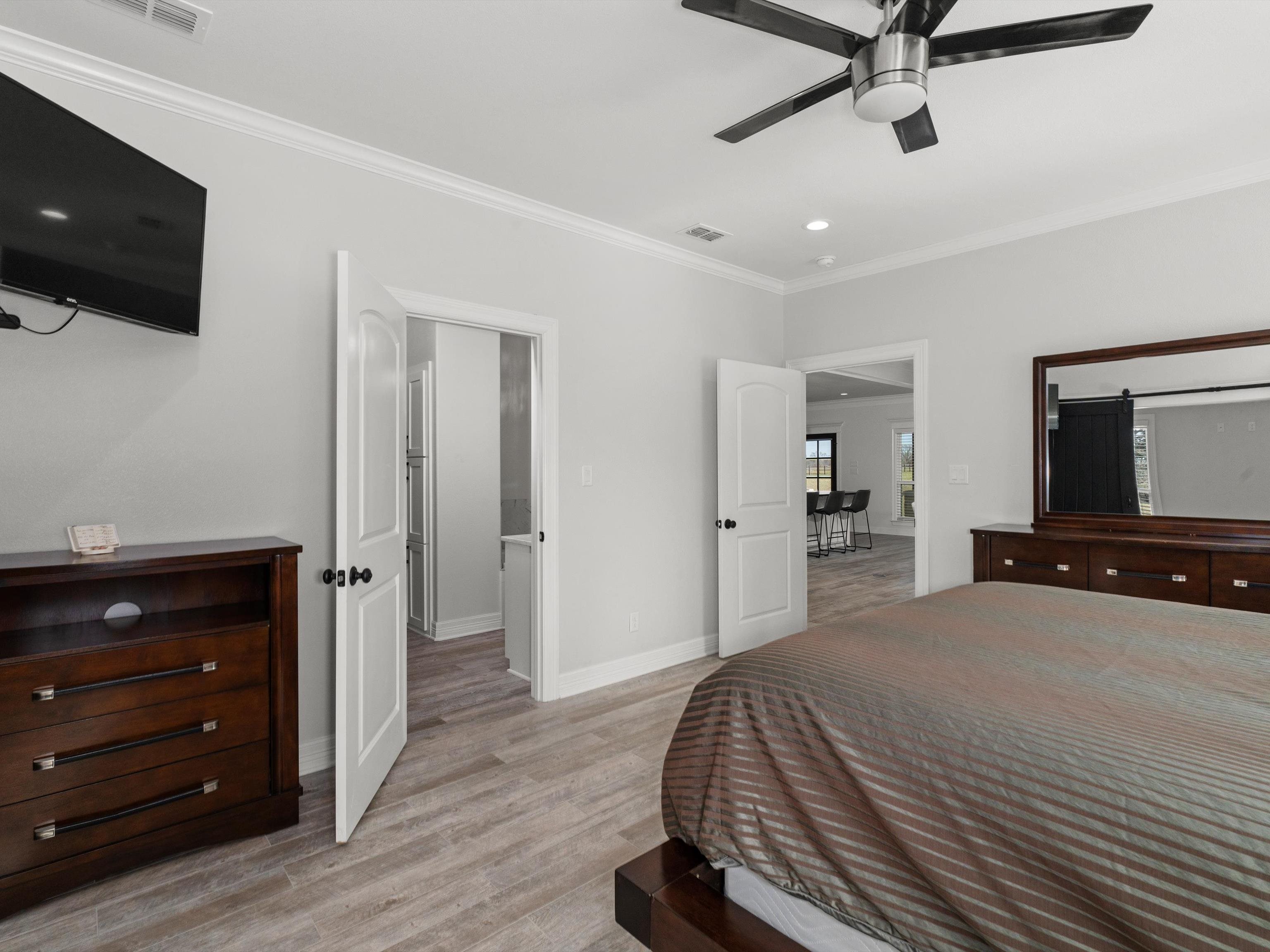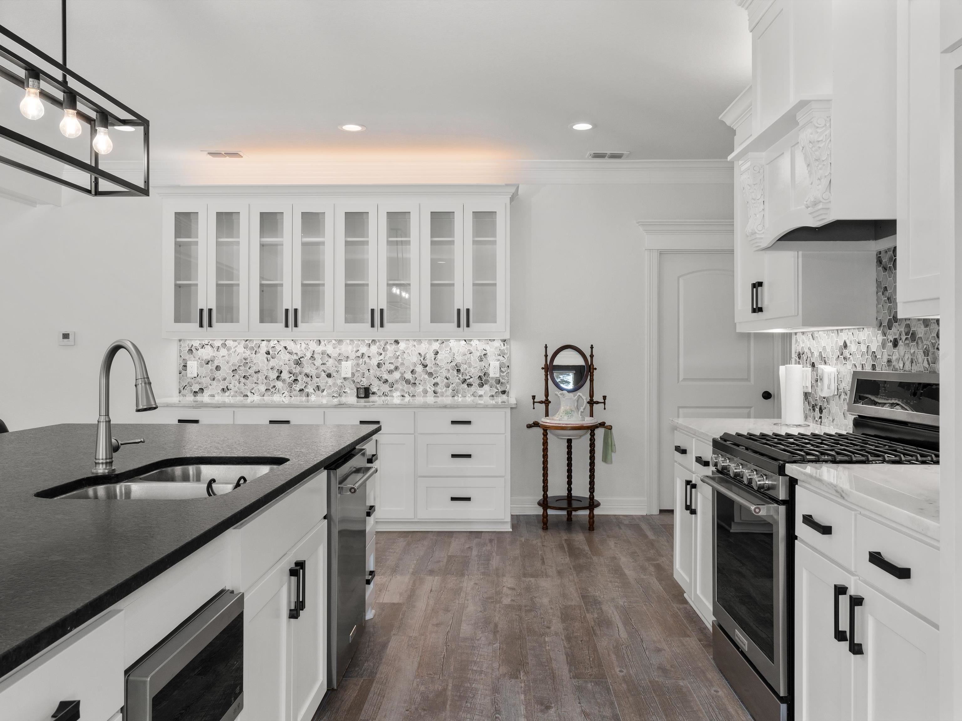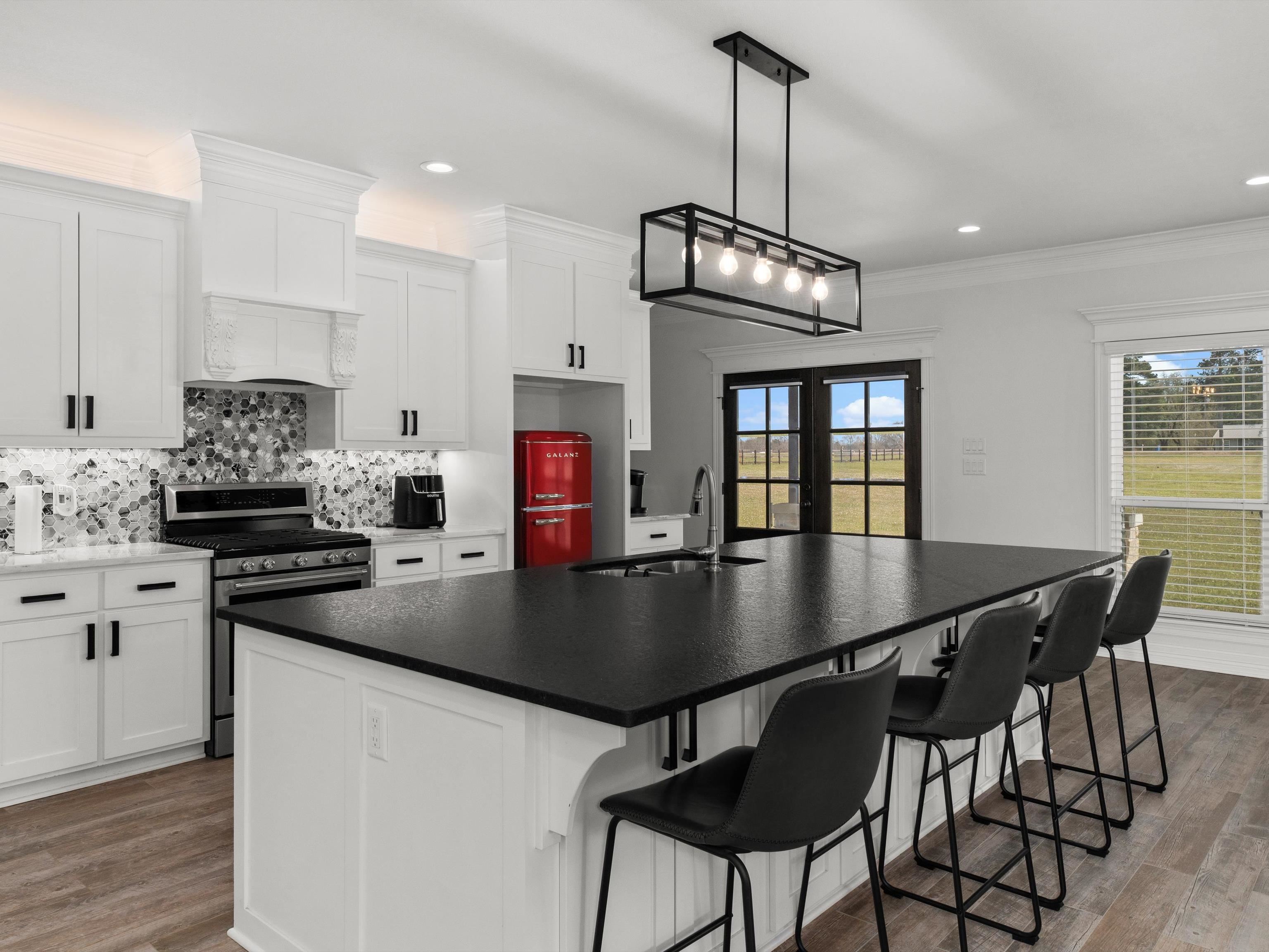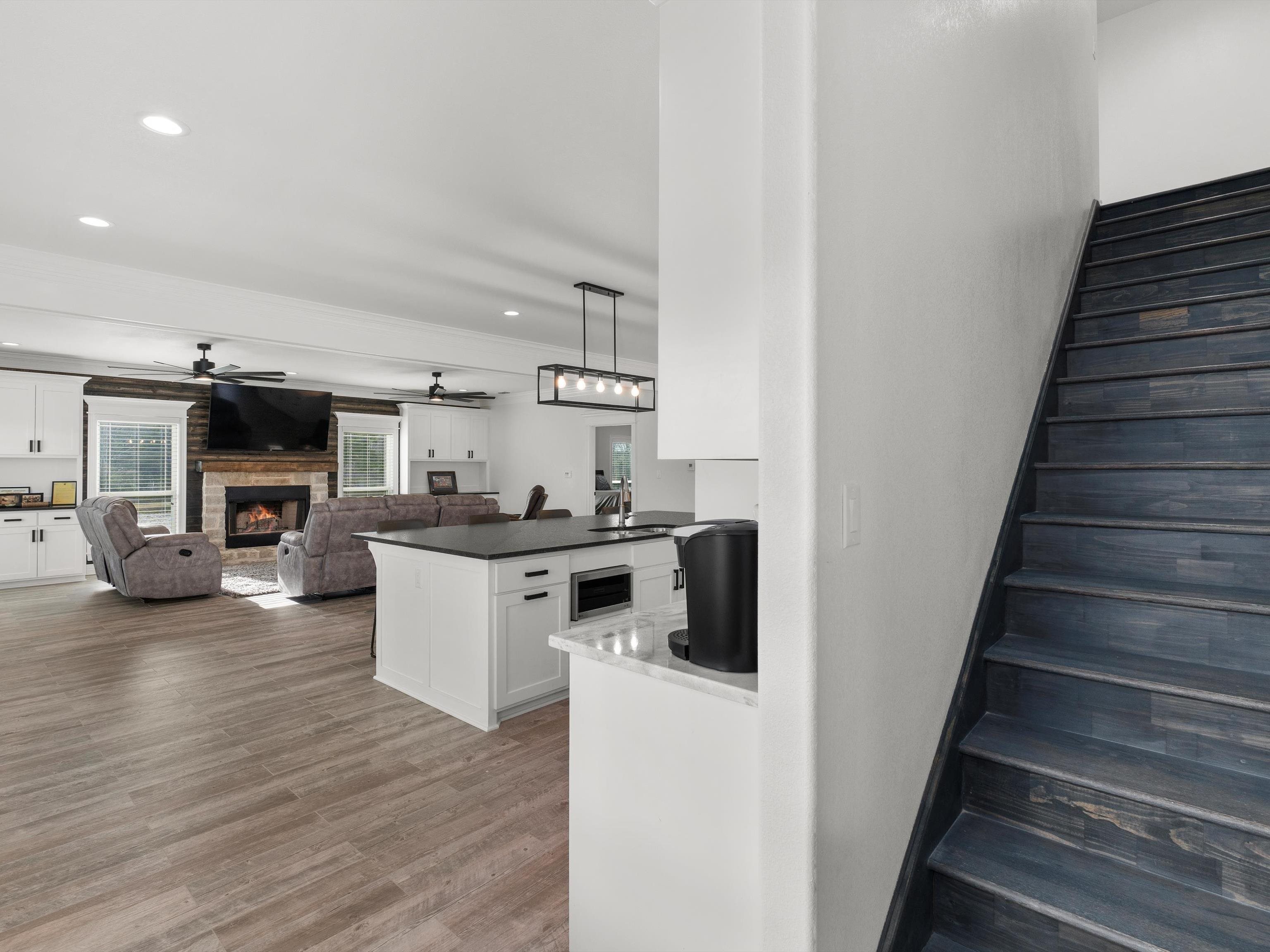 | Welcome to this stunning custom-built home, where modern luxury meets country charm! Thoughtfully designed and beautifully crafted, this 4-bedroom, 4-bath home offers an exceptional blend of comfort, style, and functionality. Step inside to find an open concept design living/kitchen/dining area perfect for family gatherings and entertaining. The gourmet kitchen is a showstopper, featuring a massive 10ft x 5ft leathered granite island, a spacious walk-in pantry, soft-close cabinets, gas range, stainless steel appliances and ample cabinet and counter space. The wood-burning fireplace with a gas starter creates a warm and inviting focal point in the main living area. Custom molding throughout, adding elegance to every space. The downstairs primary suite is a true retreat, offering a private office or seating area tucked behind rustic barn doors while the downstairs primary bath features a separate shower, jacuzzi tub, double vanities and large closet. The perfect laundry from the back entrance contains a mud area, separate walk-in shower and 1/2 bath. Upstairs you'll find a second living area or game room. The upstairs primary suite is sure to please with it's 20X18 bedroom and large 18X5 primary closet! The absolutely gorgeous upstairs primary bath boasts a freestanding soaker tub, oversized open-concept shower with three shower heads and bench, separate vanities and nice-sized walk-in linen closet. 2 more upstairs bedrooms with shared bath perfect for the kiddos or guests. This home is generator-ready and features on-demand water, two AC systems. The attached 3 car garage/shop, with its impressive 18ft ceilings and three bay doors, provides ample space for storage, projects, or hobbies. Plus, washer/dryer hookups in the shop/garage make it even more functional. Outside, enjoy peaceful evenings by the fire pit, take in the scenic views of the two stocked ponds! approximately 16ft deep and the other approximately 12ft deep! simply soak up the beauty of your surroundings. Built in 2022, with the upstairs completed in 2024, this home is a perfect mix of modern amenities and country living. Don't miss your chance to make this incredible property yours! | |