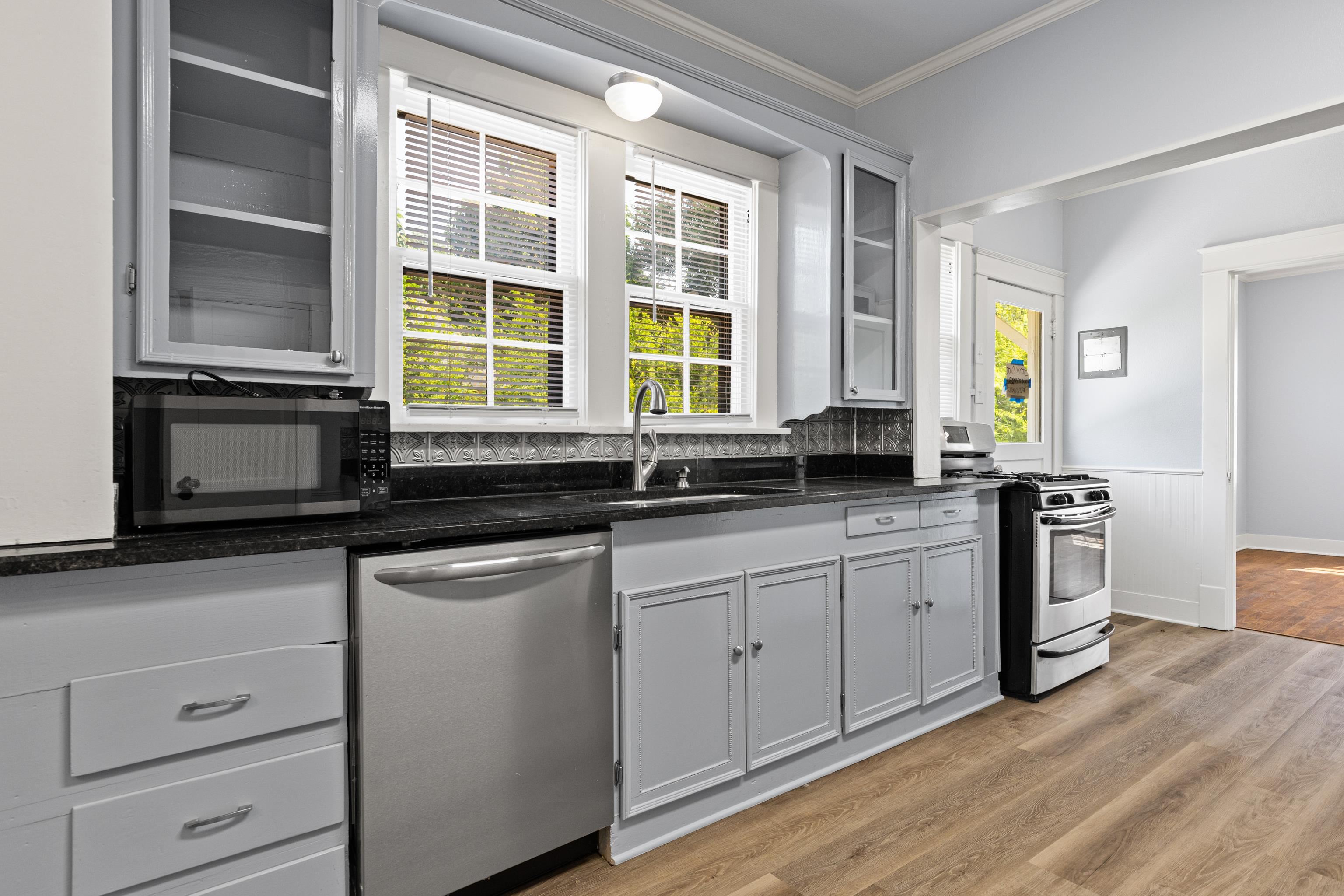 | MOVE IN READY!!! A timeless treasure with modern elegance nestled on nearly half an acre of serene land, this immaculate renovated 3-bedroom, 2-bathroom residence offers the perfect blend of classic charm and contemporary comfort. From the moment you step inside, you'll be captivated by the gleaming original hardwood floors! refinished to showcase their natural beauty! the soaring ceilings that create an airy, open ambiance. The heart of the home features a thoughtfully designed kitchen with custom built-ins and updated hardware, seamlessly flowing into a separate formal dining room. Graceful French doors open into a spacious living area, ideal for entertaining or quiet evenings at home. Every detail has been meticulously upgraded: fresh interior and exterior paint, brand-new electrical systems and fixtures, a new roof, and all-new sheetrock throughout. The bathrooms are adorned with elegant new tilework, while crown molding adds a refined touch to every room. A brand-new HVAC system ensures year-round comfort, and the kitchen is enhanced with durable vinyl flooring for both style and practicality. Outside, a newly poured sidewalk and parking pad add convenience and curb appeal, while a new chimney cap completes the home's polished exterior. INCOME PRODUCING BONUS: The property also includes a generous 800 sq ft guest suite! with its own garage, new insulation, updated walls, and a dedicated heat unit. Whether used for visitors, rental income, or a private studio, this space offers endless possibilities. Whether you're seeking a forever home or a savvy investment, this turnkey property delivers unmatched value, character, and potential. It's not just a house! a place to build your future. | |