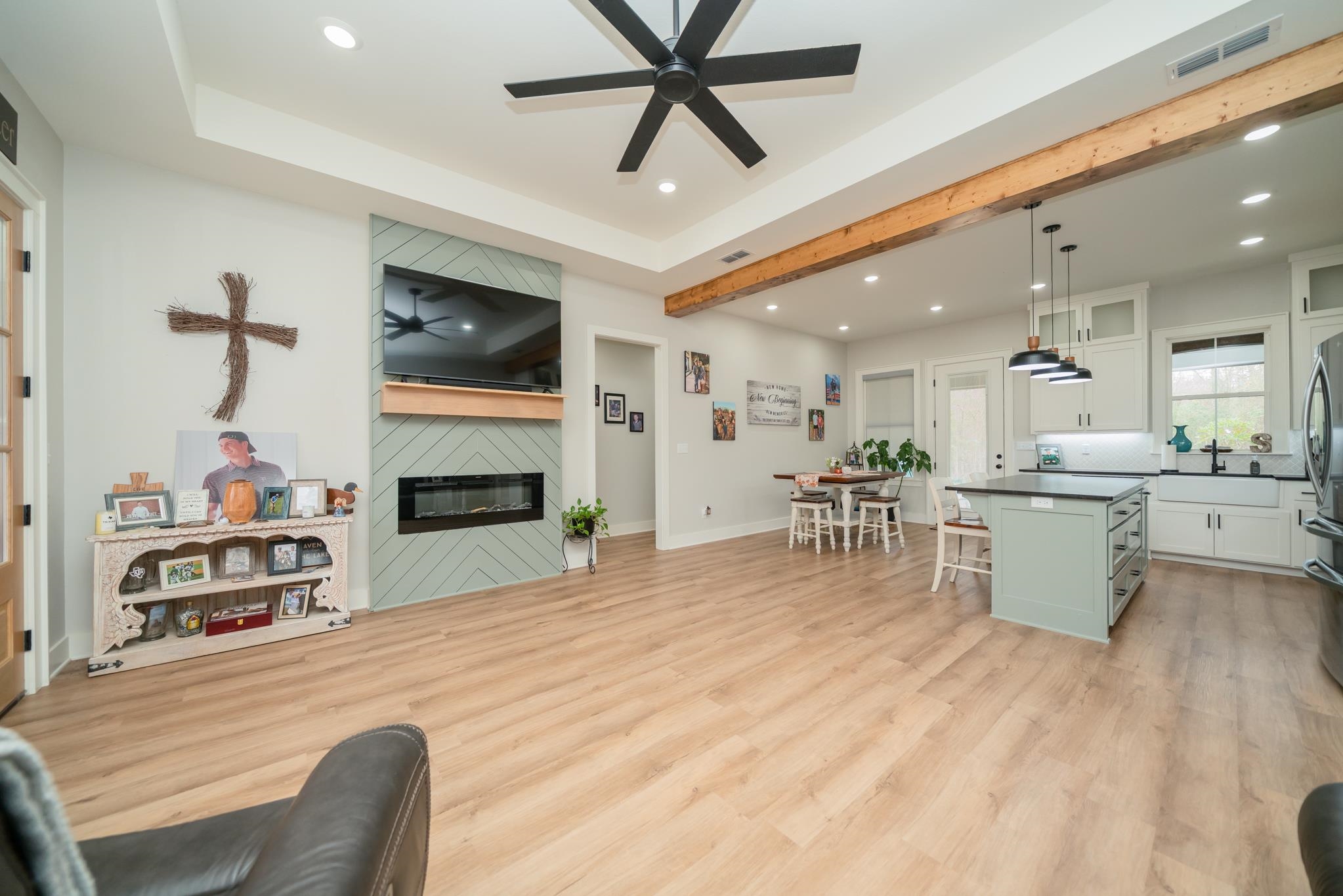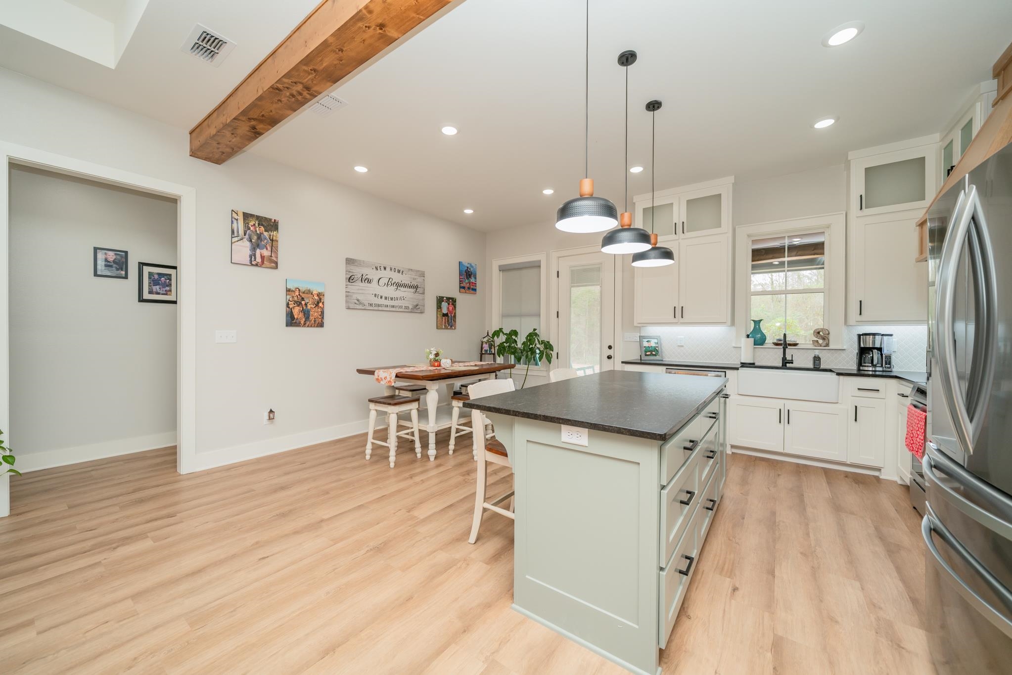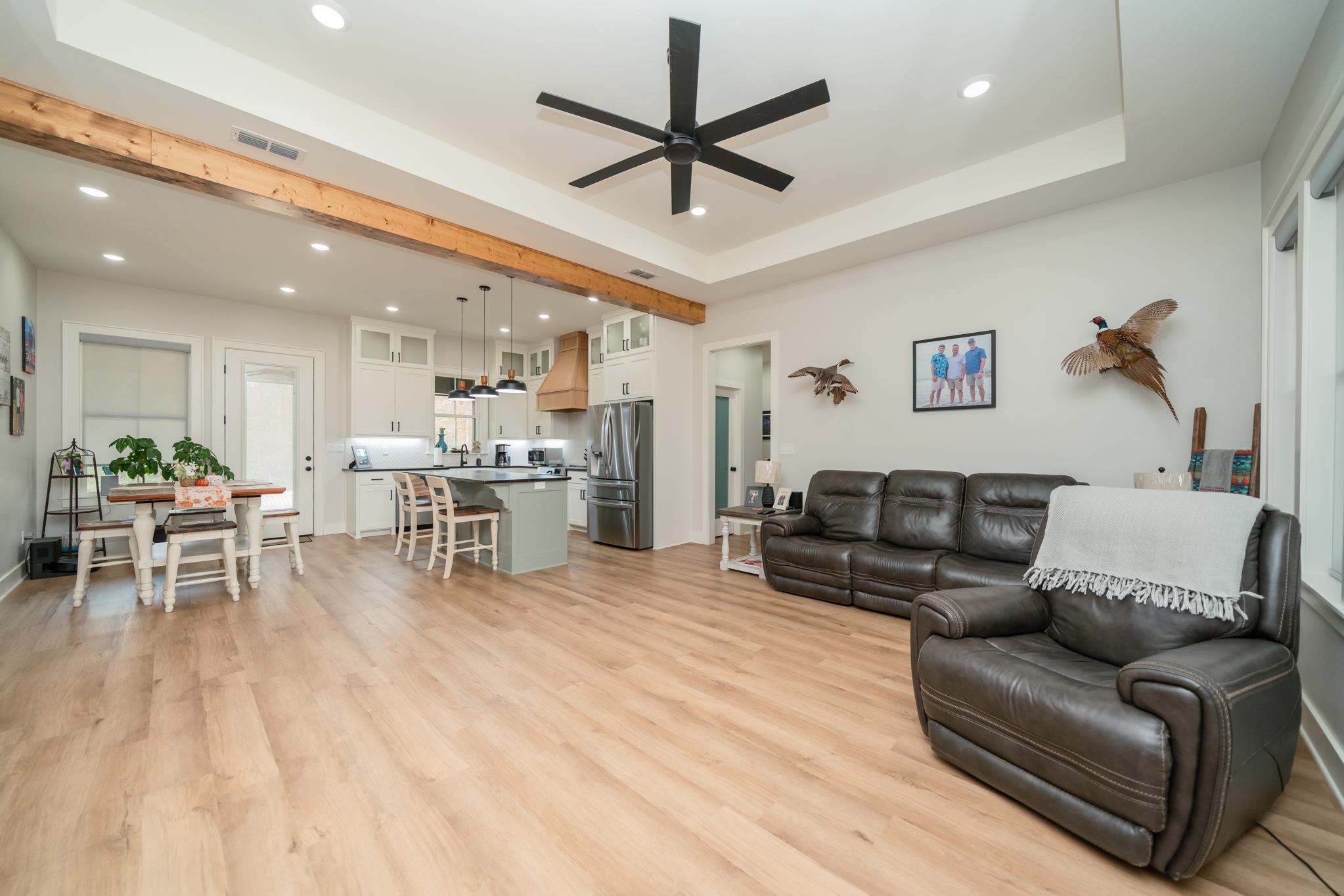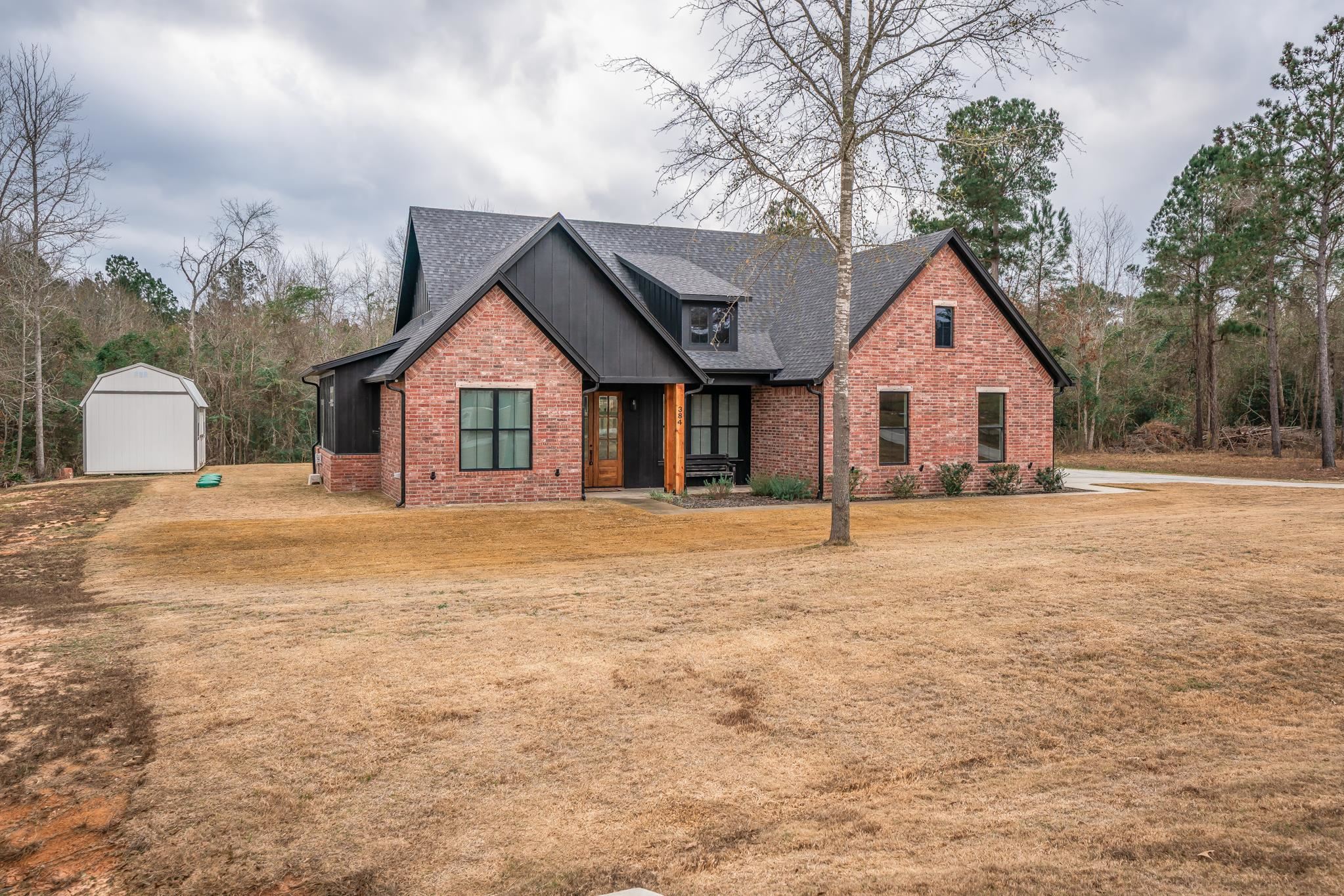 | Tucked away in a small, quaint subdivision with a peaceful country feel, this like-new home, only one year old, offers the perfect blend of charm and space. Situated on a generous .59-acre lot, the 4-bedroom, 2-bath, 2-car garage home features 1,847 sq ft of thoughtfully designed living space. Step inside to tall ceilings accented with striking wooden beams, creating an airy yet cozy atmosphere. The open floor plan flows effortlessly, making it ideal for both everyday living and entertaining. The kitchen shines with leathered granite countertops and overlooks the main living areas. Enjoy quiet mornings and relaxing evenings on the outdoor patio, with plenty of room to roam, garden, or play. A storage building adds extra convenience. Located in Sabine ISD and just minutes from Kilgore, TX, this move-in ready home delivers country serenity in a fresh, modern space. | |