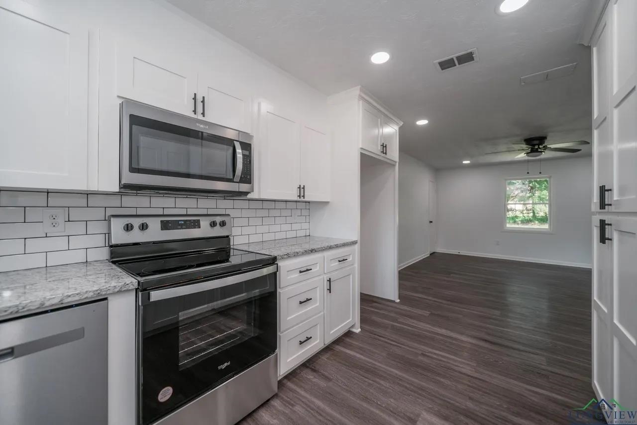 | Welcome to your beautifully updated home in the heart of White Oak, where modern comfort meets everyday convenience. This inviting 3-bedroom, 2-bath residence with a 2-car garage has been thoughtfully refreshed within the last few years, featuring updated paint, flooring, and fixtures throughout. The spacious living room is filled with natural light, creating a warm and relaxing atmosphere ideal for both everyday living and entertaining. The updated kitchen offers sleek countertops, stainless steel appliances, and custom cabinetry, providing both style and functionality. Conveniently located just minutes from White Oak ISD, baseball and softball parks, a splash pad, and a city park! home is perfect for those seeking community amenities close to home. Nearby shopping, dining, and recreational opportunities add to the appeal, making this property an excellent choice for comfortable and convenient living. | |
