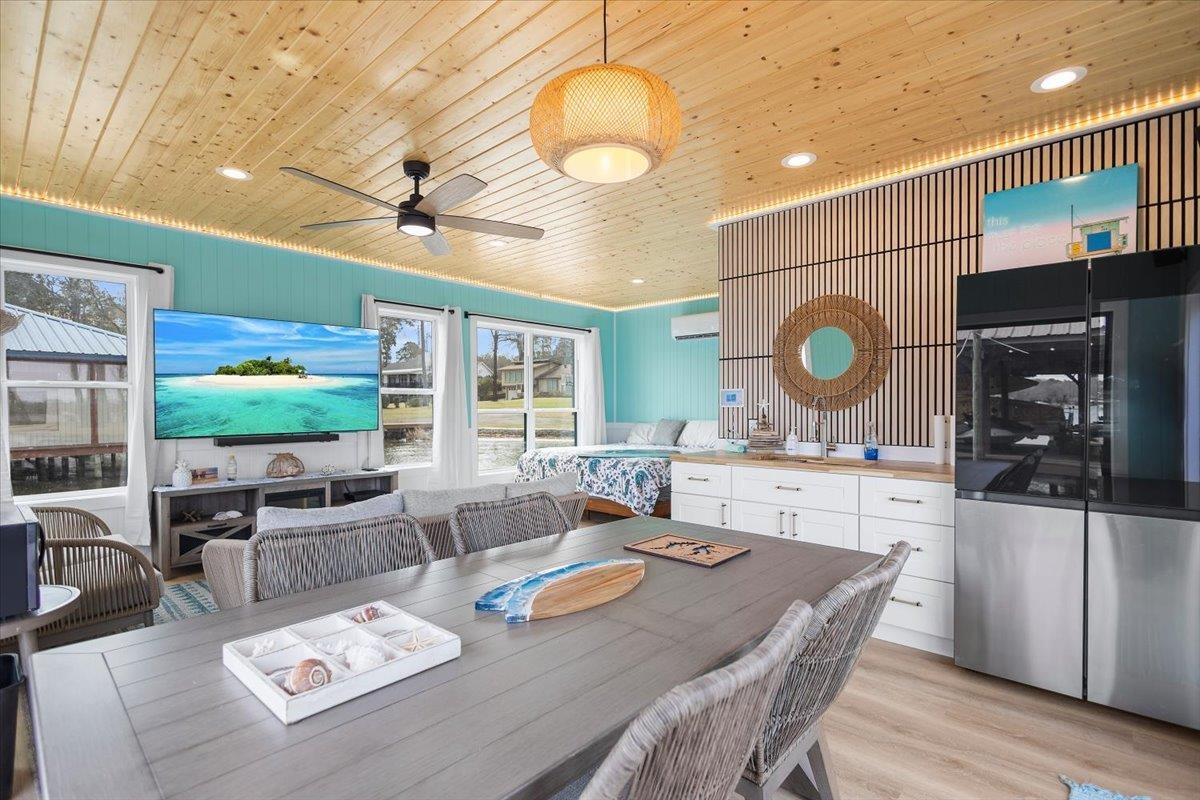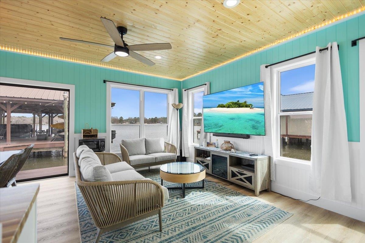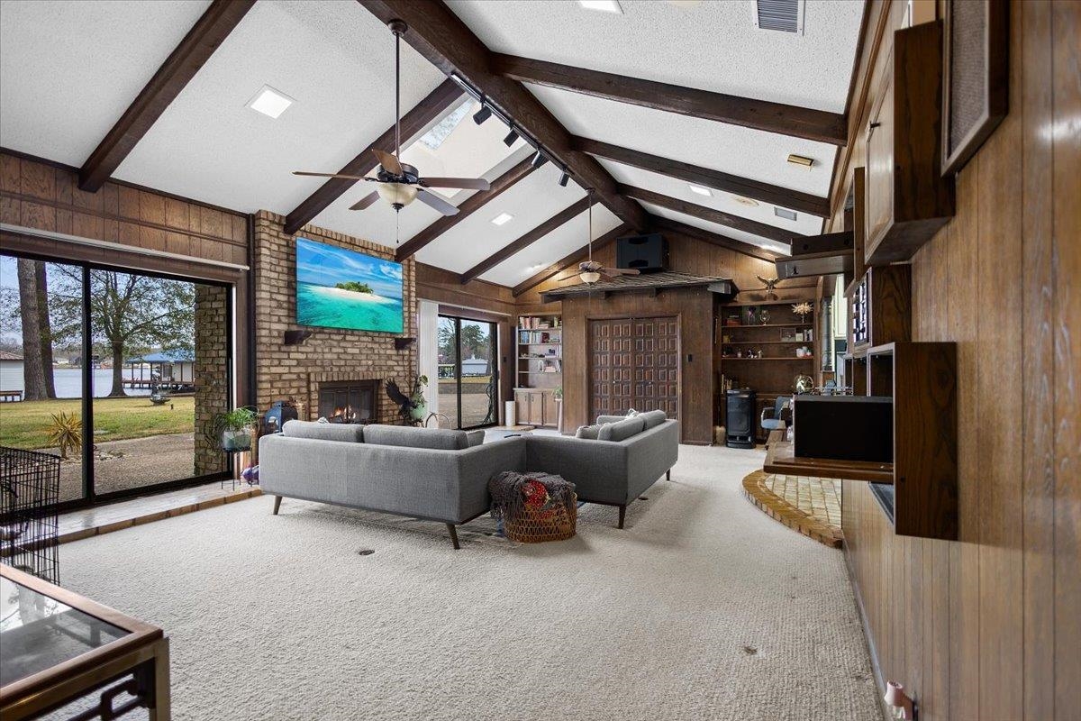 | Welcome to a rare opportunity to own a premier point property on Lake Tyler, offering expansive shoreline footage and breathtaking panoramic water views. Nestled among mature pine trees in the established East Shore Estates, this property delivers privacy, space, and the ultimate lake lifestyle. The main lake house features approximately 3,009 square feet of living space with a spacious four-bedroom layout designed for comfort and functionality. The primary suite is conveniently located downstairs, providing privacy and ease of access, while two bedrooms are situated upstairs along with an additional bedroom and flexible living space. Large windows invite natural light and frame peaceful lake views, creating a warm and inviting atmosphere throughout the home. The property offers strong structural character and generous square footage, making it an exceptional opportunity for customization. The lake house has tremendous potential and is ready for a remodel to suit the next owner's vision! transforming it into a modern luxury retreat or the perfect rustic waterfront getaway. Adding tremendous value to the property, the approximately 500-square-foot boathouse has been completely renovated with state-of-the-art technology and high-end finishes. This impressive space features voice-activated controls for lighting and speakers, offering seamless smart-home convenience right on the water. The boathouse includes two bedrooms and a full bathroom with a custom walk-in shower, creating comfortable guest accommodations or a private retreat for family and friends. Whether hosting weekend visitors or exploring short-term rental possibilities, this upgraded space provides flexibility and modern appeal. Positioned on a prime point lot, the property boasts exceptional lake frontage and wide-open views in multiple directions. The covered dock and boathouse allow for easy access to boating, fishing, and year-round recreation. Imagine relaxing mornings with coffee overlooking the water, afternoons spent cruising the lake, and evenings enjoying sunset views from your own shoreline. This is more than just a lake house! a chance to create a personalized waterfront estate in one of the most desirable locations on Lake Tyler. With premium frontage, a renovated smart boathouse, and a 3,009-square-foot main home ready for your vision, this property offers a unique blend of immediate enjoyment and future potential. | |
