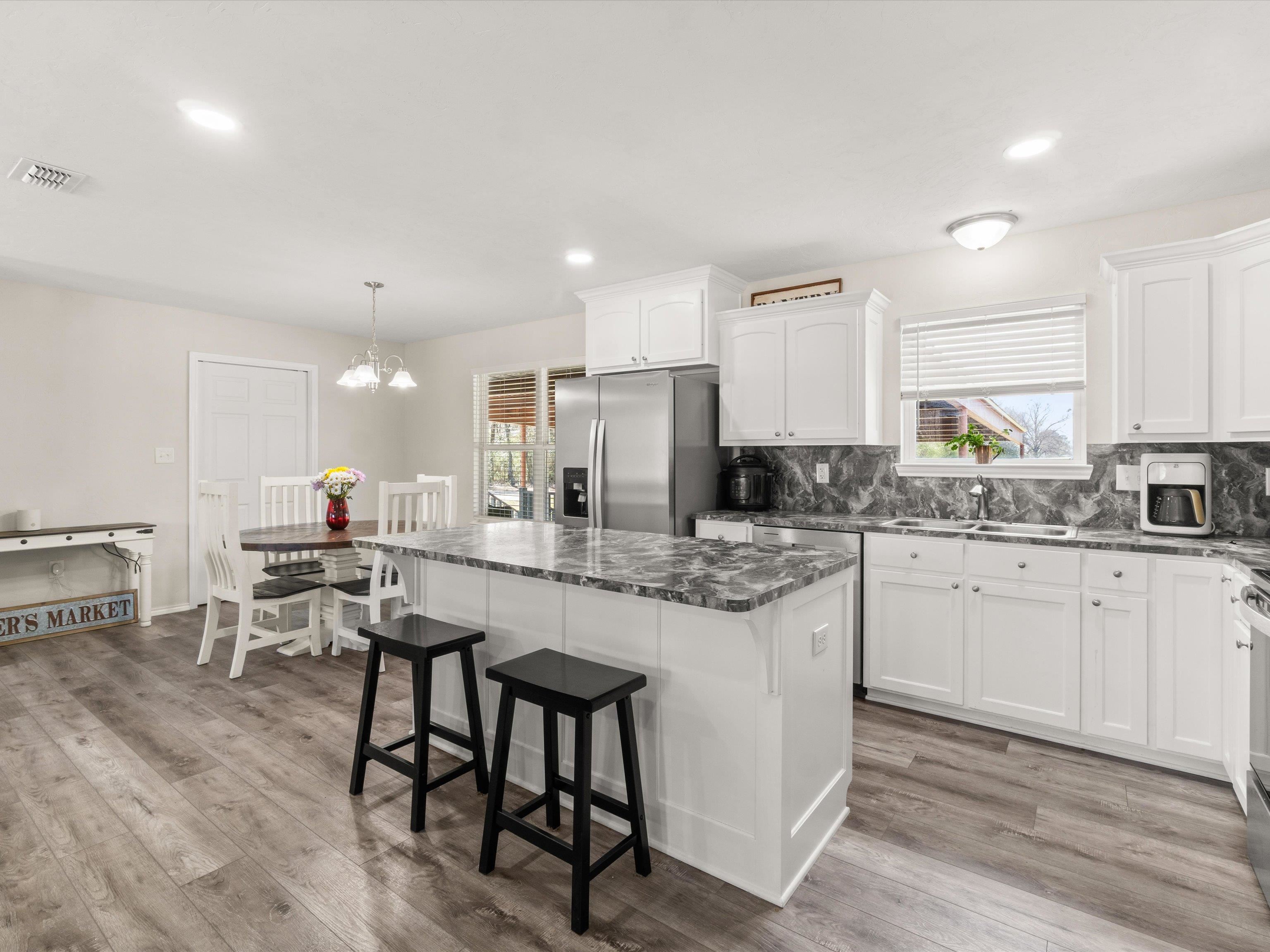 | 2023 Custom-Built Country Home on 1.087 Acre! Move-In Ready! Experience a peaceful country living in this stunning 3-bedroom, 2-bath home built in 2023 by Jefferson Custom Built Homes. Designed with an inviting open floor plan, this home offers both comfort and style. Walk inside to a huge open concept living space featuring a kitchen and dining combo, custom cabinets, and stainless-steel appliances. Large windows throughout allow plenty of natural light, creating a warm and welcoming atmosphere. The split primary suite provides privacy and relaxation, complete with a spacious bathroom featuring a soaking tub, walk-in shower, and his-and-her separate closets. Enjoy outside-to your own outdoor retreat! From the back door, you'll find a huge, covered metal deck, perfect for entertaining or unwinding. Also, there is a metal 2-car carport that is also attached, adding both convenience and protection for your vehicles and atv's. Enjoy breathtaking sunsets from the deck while sipping a glass of sweet tea and embracing the beauty of true country living. Don't miss out on this incredible home! your showing today! | |