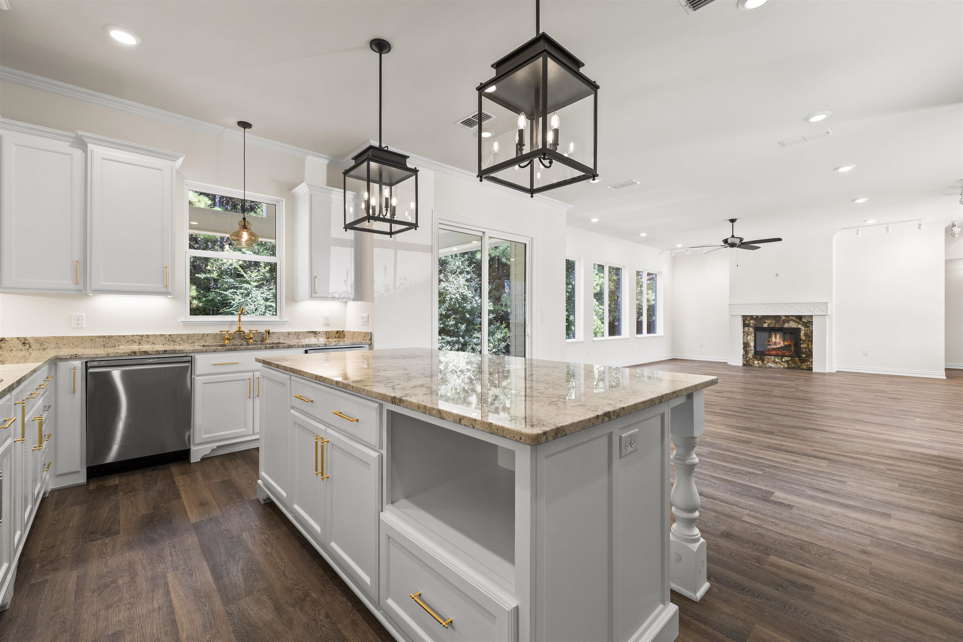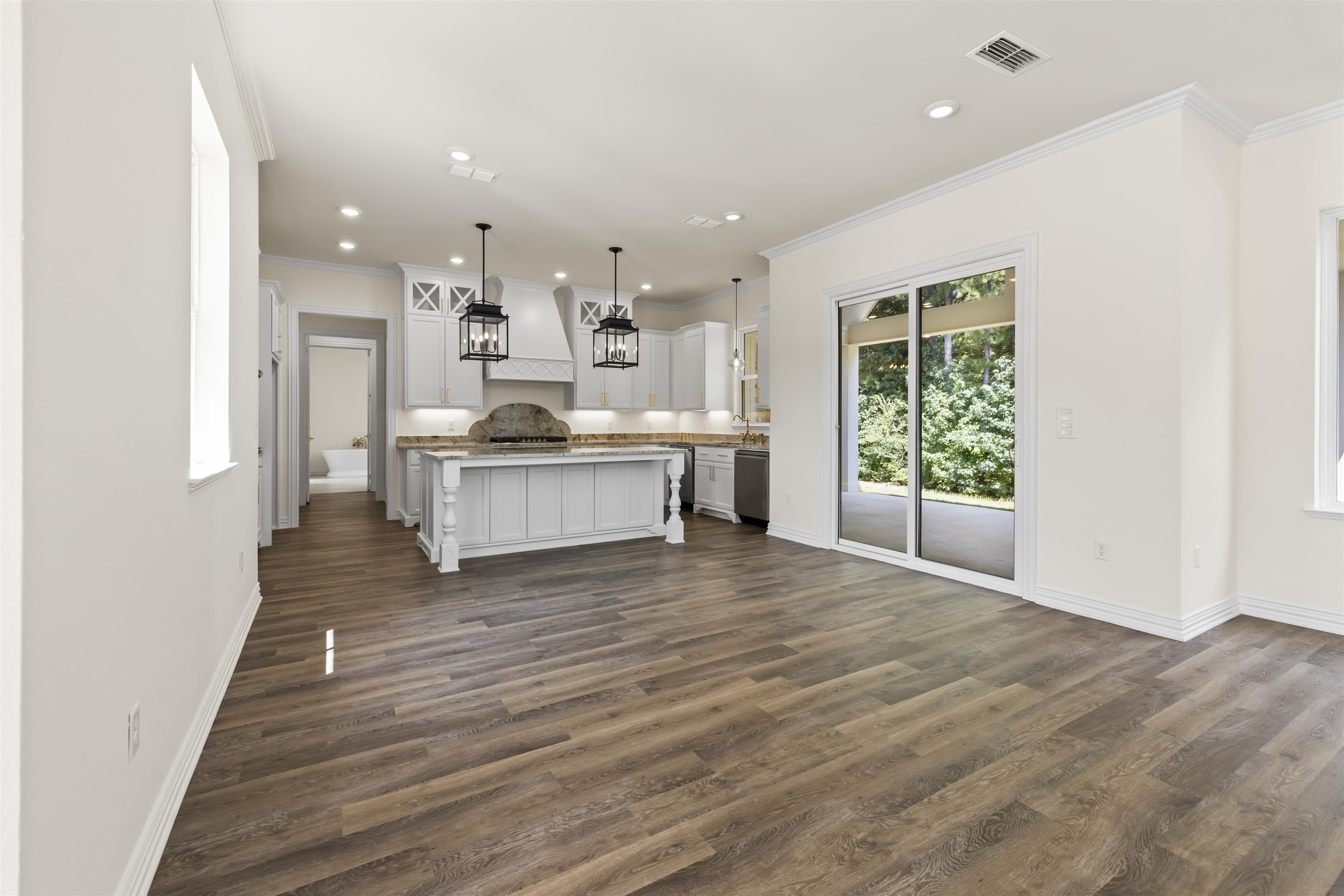 | SPACIOUS FAMILY HOME WITH PRIVATE GREENBELT & LUXURY FEATURES: Designed with both comfort & privacy in mind, this beautifully crafted family-style home offers refined living in a serene setting. Situated on a 180 foot wide private backyard greenbelt, the property is perfect for those who appreciate nature, space & upscale amenities. Step onto the charming front porch or unwind on the vaulted back porch, ideal for morning coffee or evening gatherings. Inside, you'll find a spacious open floor plan filled with natural light from large, premium single divided light windows & main floor track lighting. The gourmet kitchen is a chef's dream, featuring a gas cooktop, double oven, two premium extra-quiet dishwashers, abundant storage & upscale custom cabinetry. Adjacent, an enormous butler's pantry with adjustable shelving offers exceptional storage & prep space. The layout includes a split floor plan with a large private primary suite on one side & a private guest suite on the other & two bedrooms upstairs, making it ideal for multigenerational living. Every main level bedroom, room & hallway is thoughtfully designed with wide doorways & halls, along with curbless, dual-system shower--making the main level fully mobility friendly. You'll also enjoy an enormous laundry room with an extra large sink & natural light, plus abundant closets with flexible adjustable shelving throughout. Energy efficiency meets everyday convenience with foam insulation, two HVAC systems & two hot water tanks. Every inch of this home reflects quality & thoughtful design--from upscale trims, surfaces, plumbing & light fixtures to sound-reducing appliances & vent hood. This home combines everyday functionality with elegant, long-term comfort--perfect for families of all ages or those looking to age in place without sacrificing style. | |