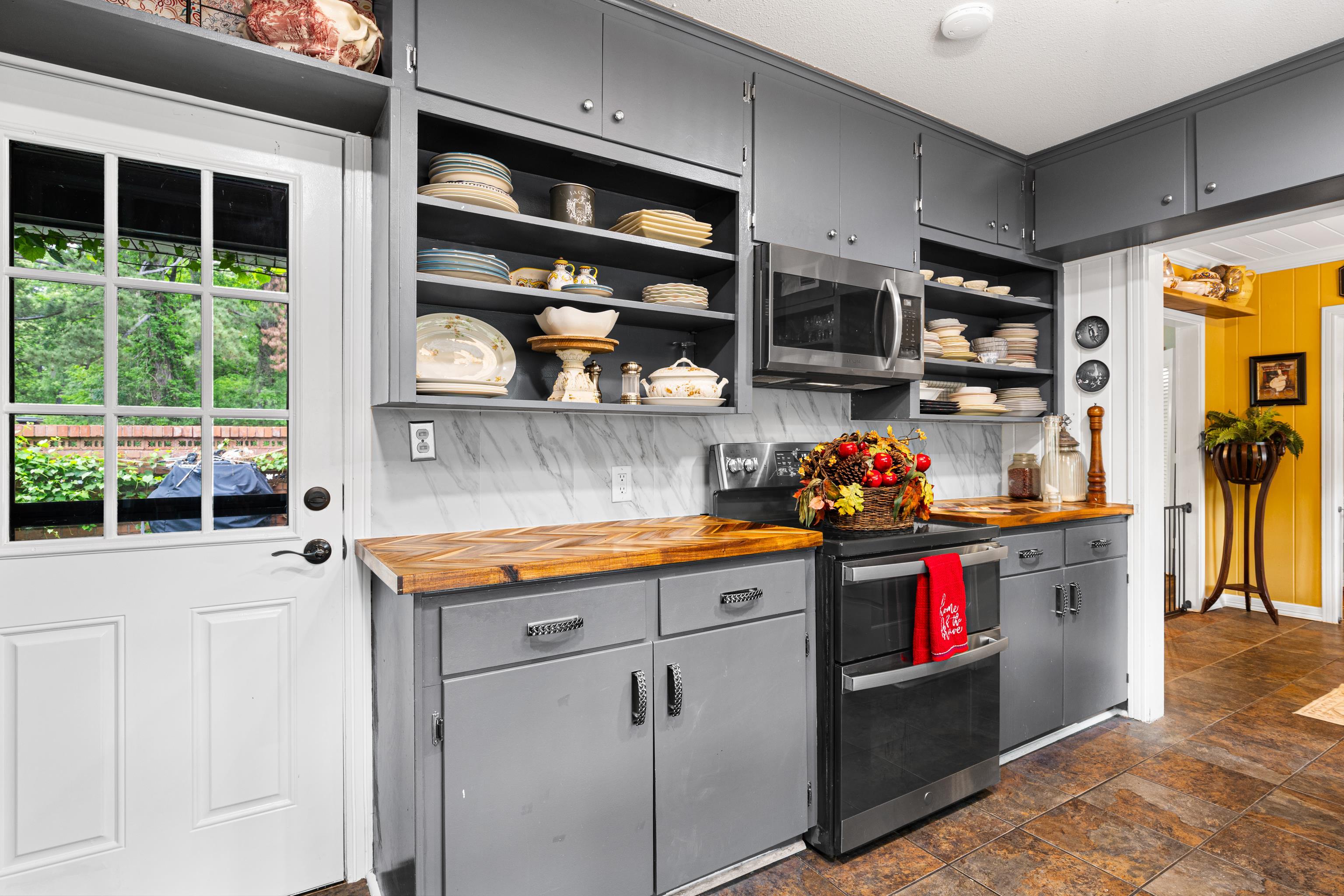 | Step into this beautifully updated, mid-century modern home offering 3 bedrooms and 2.25 baths. Nestled on 2 full lots in the desirable south Kilgore area. With new flooring throughout, the home blends timeless character with modern updates. Two of the baths have been fully renovated, adding style and comfort. The spacious layout includes a formal dining room, cozy den and a bright breakfast area---perfect for both everyday living and entertaining. The Kitchen features real butcher block countertops paired with a sleek marble backsplash, for a clean, contemporary feel. Out back, you'll find a true private oasis. Enjoy multiple outdoor living spaces including two covered patios and a covered deck. The yard also features an above-ground pool, hot tub, raised garden beds, a greenhouse and ample storage options---ideal for relaxing or hosting gatherings. A new privacy fence enhances both beauty and seclusion. Additional highlights include a charming front courtyard and a brand-new roof with low maintenance vinyl trim. Plus, plenty of storage space for recreational vehicles, boats, tractors and your other toys. You get the picture? This inviting home offers comfort, style and exceptional outdoor living. Don't miss the chance to make it yours!!! | |