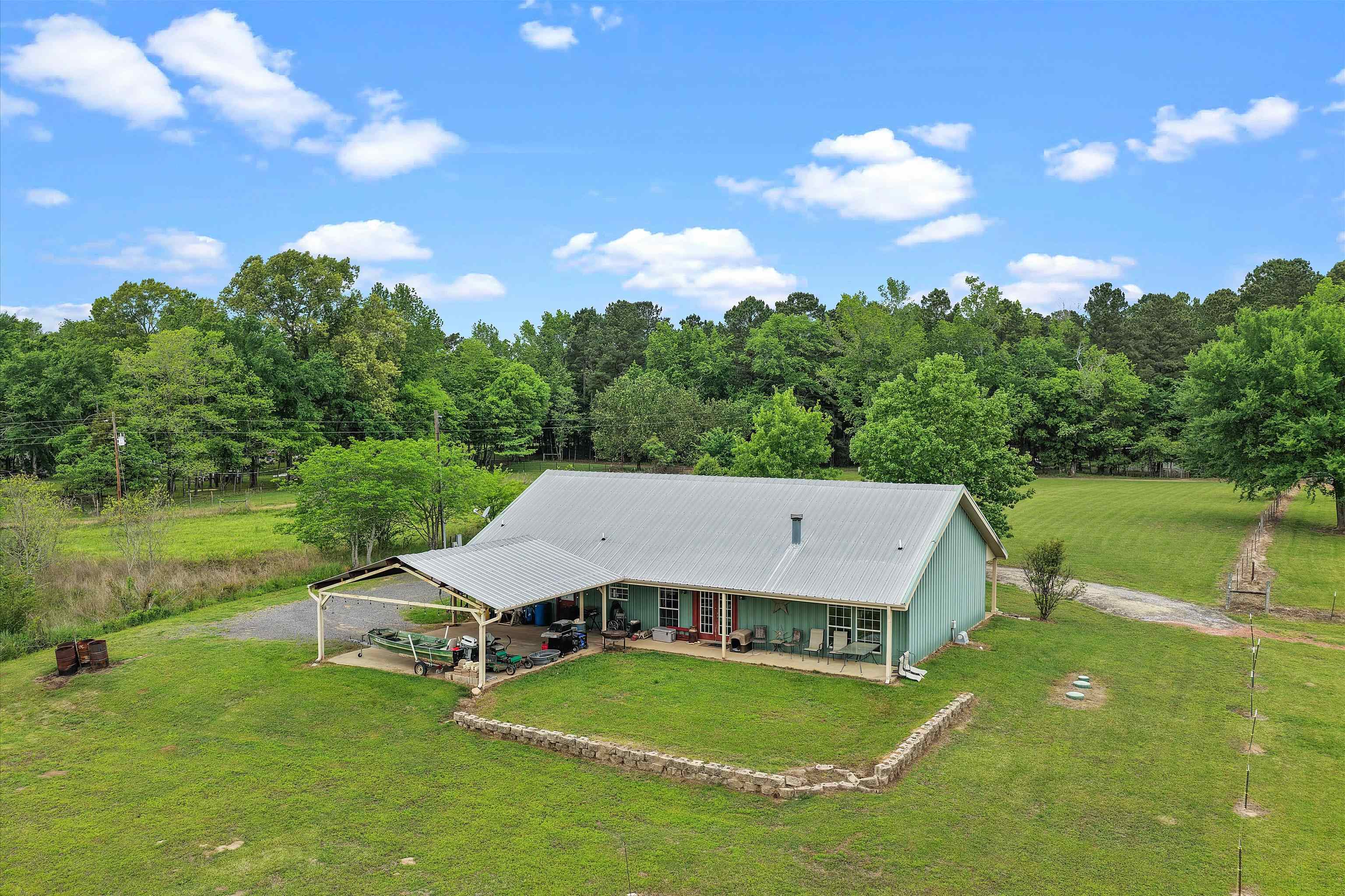 | Welcome to your own slice of East Texas countryside at 8550 New Hope Road where modern comfort meets wide-open freedom on over 9 beautiful acres. Designed for both everyday living and a true rural lifestyle, this 4-bedroom barndominium offers the space, functionality, and charm so many are searching for. Step inside to a thoughtfully designed interior featuring durable finishes and an open-concept layout that feels both inviting and spacious. The soaring ceilings with exposed beams create a warm, airy atmosphere, while the split-bedroom arrangement provides a private retreat in the primary suite. Natural light fills the home, making it perfect for gathering, entertaining, or simply enjoying peaceful country living. Outside, the property truly shines. Fully fenced and ready for livestock, horses, or agricultural use, the land offers lush pasture and a stocked pond perfect for relaxing afternoons or casting a line. Covered front and back porches give you the ideal spot to take in those East Texas sunsets, while additional features like a carport, playhouse, and garden space add southern charm. A separate outbuilding equipped with utilities opens the door for endless possibilities! Whether you need a home office, guest space, or workshop. There's even an RV hookup for added convenience when hosting friends and family. With an Ag exemption already in place, you'll enjoy the benefits of lower property taxes while embracing a slower, more peaceful pace of life. If you've been dreaming of a property that offers privacy and country beauty, this one checks all the boxes. And as a unique bonus, your neighbors next door are about as quiet and low-maintenance as it gets no late-night noise, no unexpected traffic, just a little extra peace and privacy. Schedule your showing and come experience it for yourself. | |