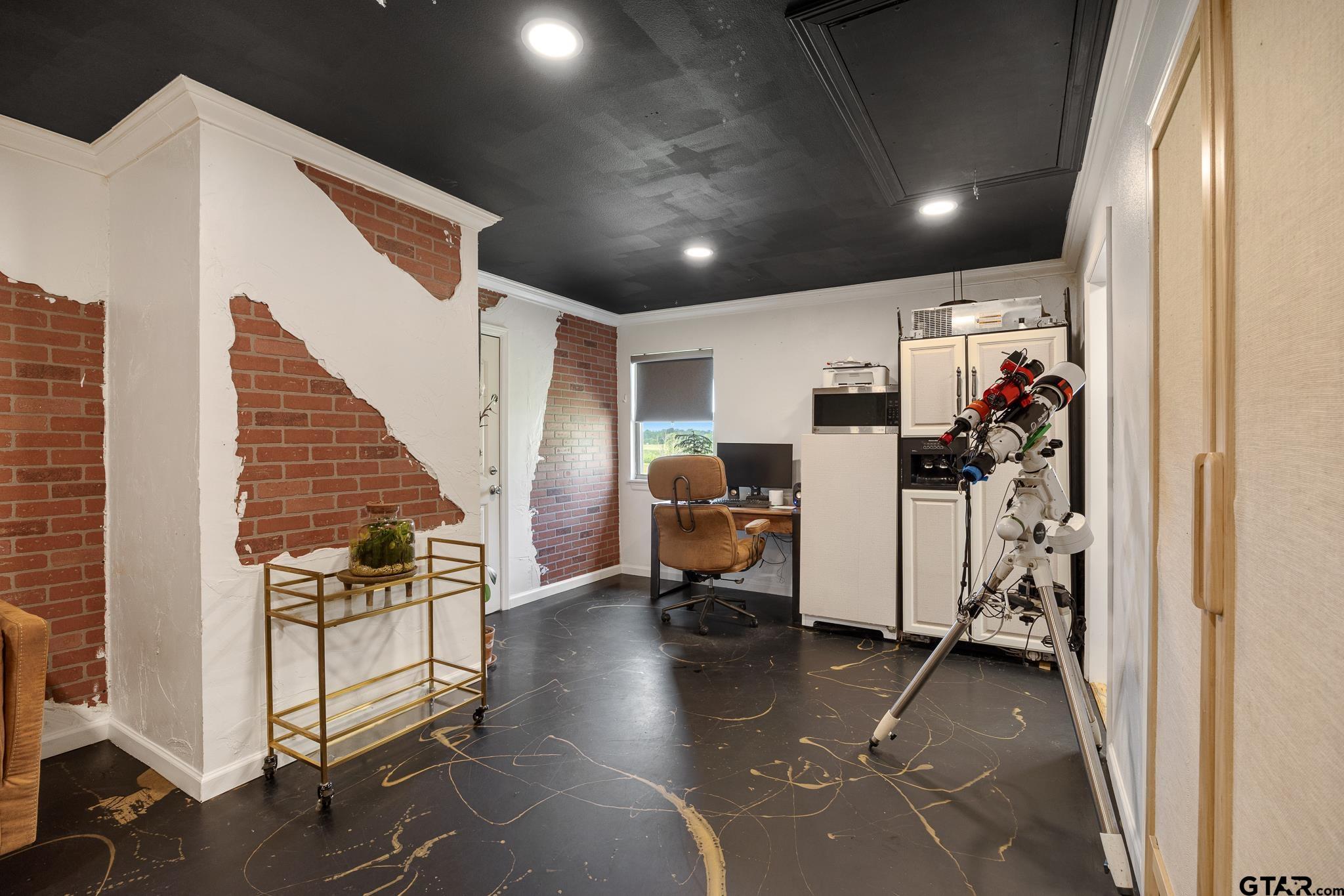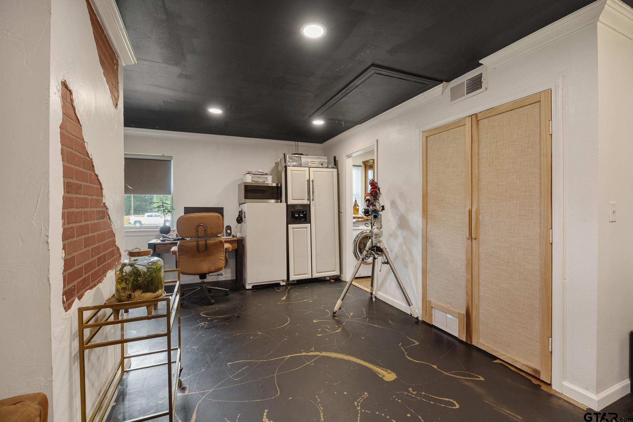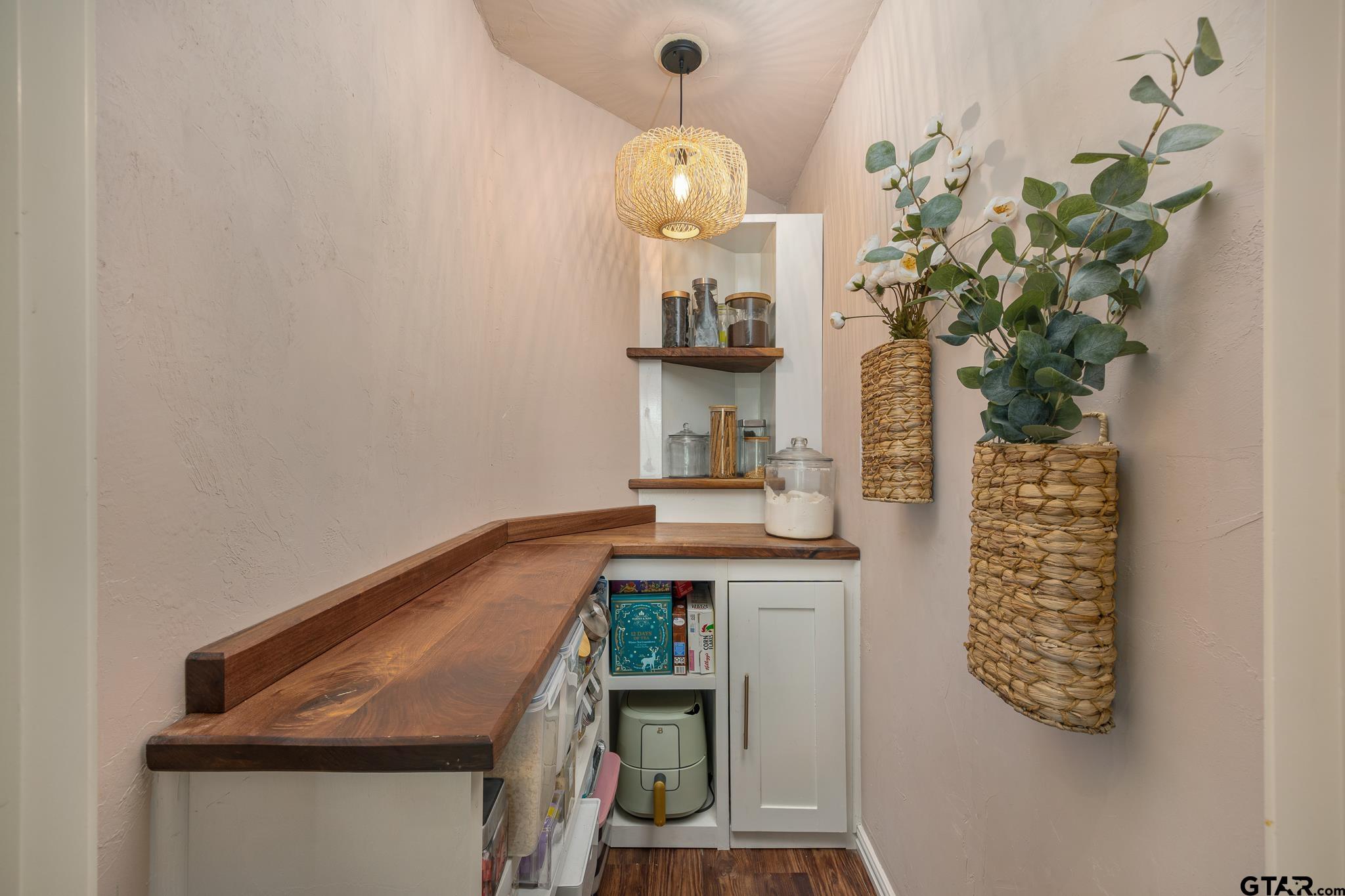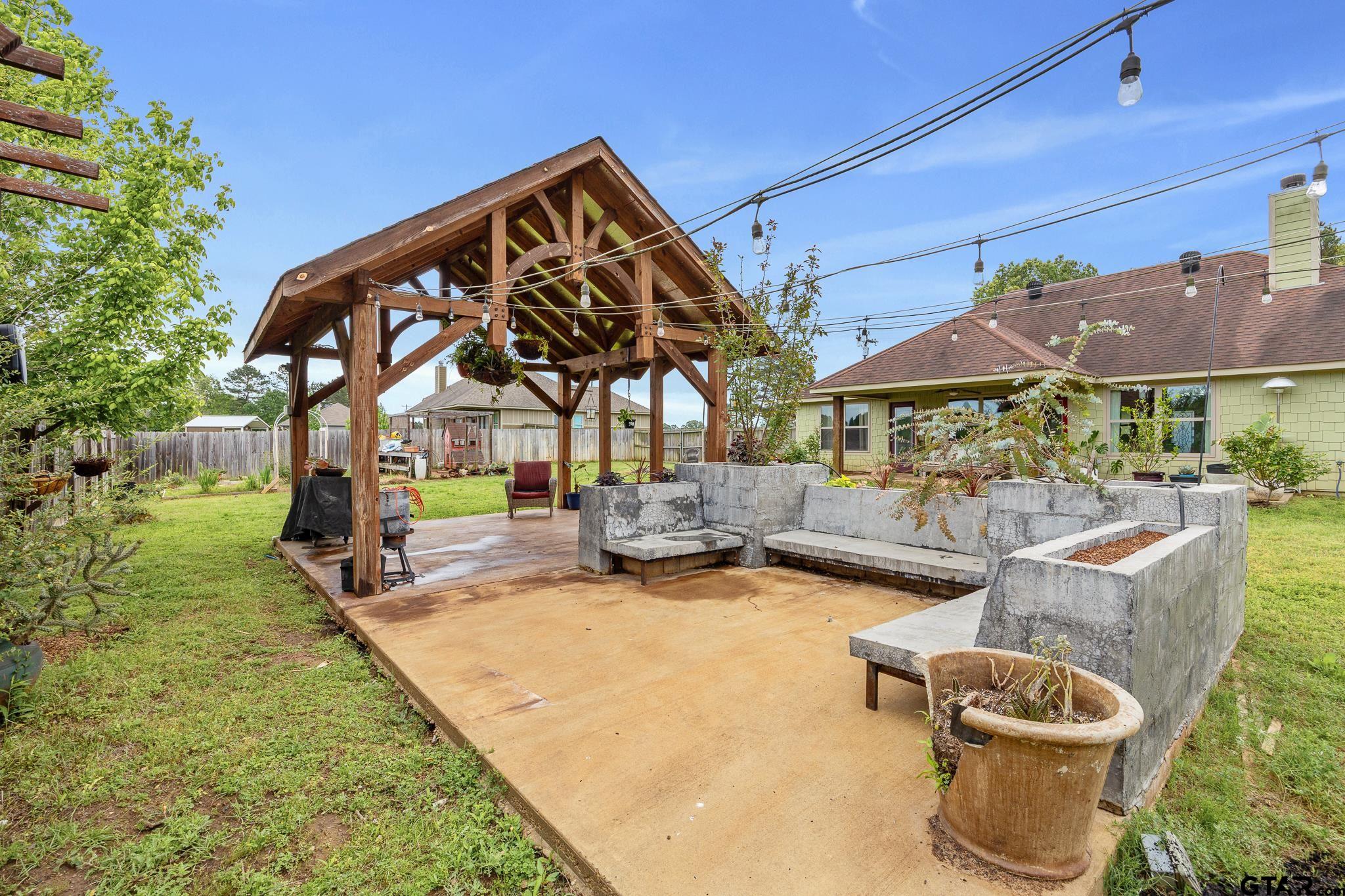 | Located on a quiet county road, this home sits on over half an acre, offering a peaceful setting with convenient access to both Overton and Kilgore. The interior features an open floor plan with dark wood-look vinyl flooring throughout the main living areas and carpet in the bedrooms and tile bathrooms. The kitchen is thoughtfully designed with ample workspace, ideal for everyday living and meal preparation. The spacious primary suite includes a large bedroom and an en-suite bath with dual sinks and a soaking tub. A converted closet has been transformed into a dedicated coffee nook with wood countertops, adding a unique and functional touch. The garage has been partially converted and fully enclosed, creating a versatile second living area or home office. The backyard is set up for outdoor enjoyment, featuring a partially covered patio along with an open section for additional seating or sun exposure. A separate outdoor covered area provides additional space for relaxing or entertaining. The property also includes a designated garden area and a chicken enclosure, offering additional outdoor functionality. Situated within Kilgore ISD. | |