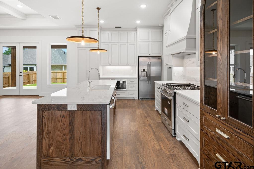 | Experience upscale living in the highly desirable Oak Creek community in Tyler. Crafted by Foundation Homes and Design, this stunning two-story residence offers 4 bedrooms and 3 bathrooms, thoughtfully designed with elevated style and functionality. The open-concept layout showcases a striking living room ceiling detail, creating an inviting yet sophisticated atmosphere. The generously sized primary suite is a true retreat, complete with a spa-inspired bathroom and a large walk-in closet. The main living space flows effortlessly into a chef's kitchen featuring custom cabinetry, upscale finishes, and a discreetly tucked-away pantry. A separate guest suite ensures privacy and comfort for visitors. Step outside to a covered back porch with a beautiful tongue-and-groove ceiling! for relaxing or entertaining. Situated within the prestigious Oak Creek neighborhood, residents enjoy convenient access to Tyler Athletic & Swim, the scenic Legacy Trail, and well-maintained community sidewalks. Ideally located near everything Tyler has to offer, this exceptional home blends luxury, comfort, and convenience. Don't miss your chance to make it yours. | |